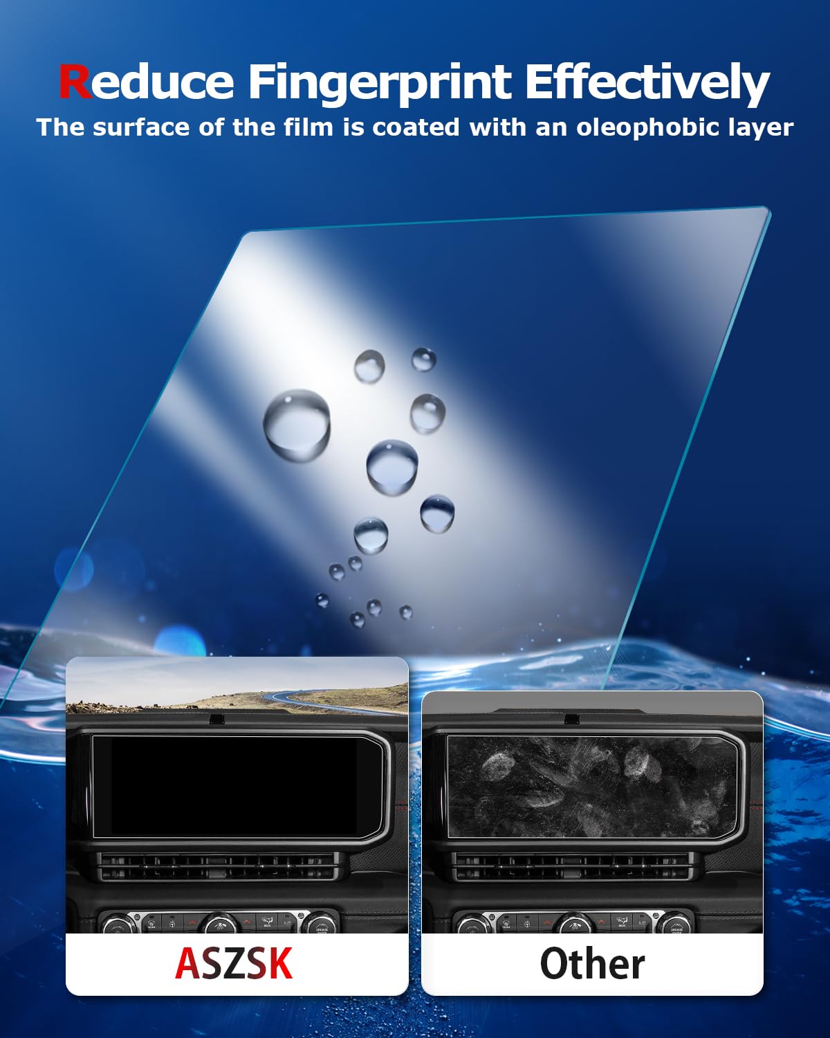 Q: Does the ASZSK screen protector reduce glare and fingerprints?A: Yes, the screen protector features an oleophobic coating to minimize fingerprints and a matte layer to reduce glare, enhancing your visibility while driving.