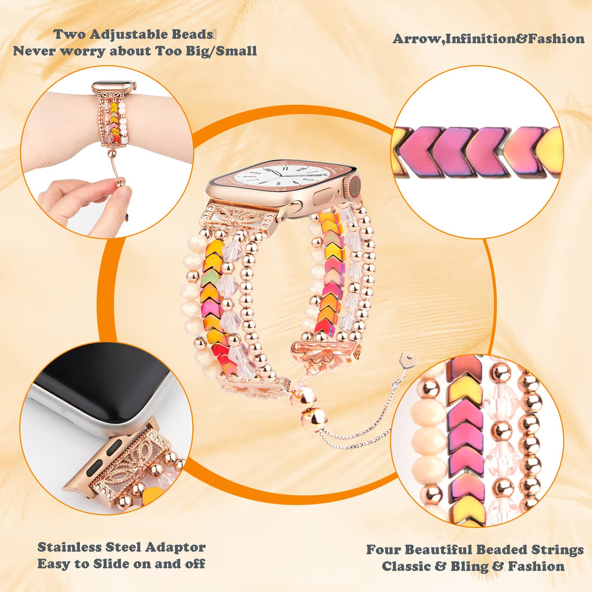 Beaded Bracelet Band Compatible For Apple Watch Ultra Series Se 8 7 6 5 4 3 2 1, Fohuas Adjustable Arrow Crystal Rainbow Pearl B