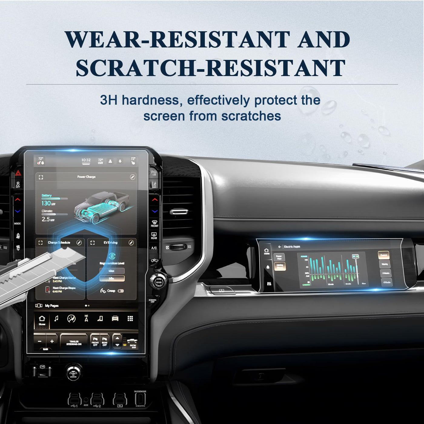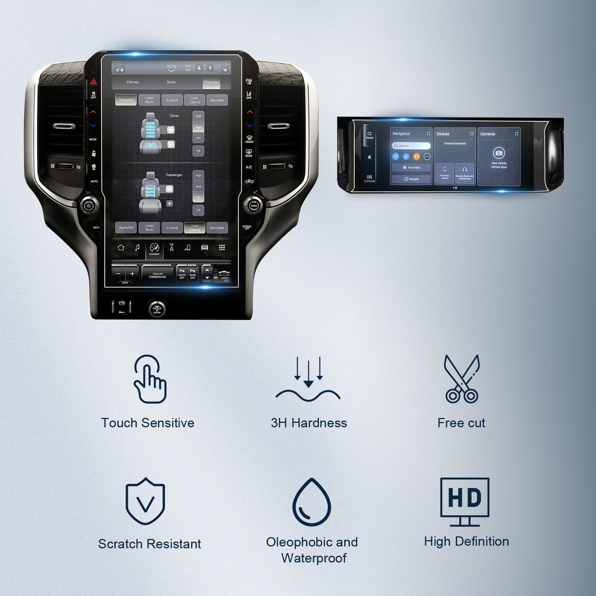 Perfectly Fit For 2025+ Dodge Ram 1500 Screen Protector, 2025+ Ram 1500 Accessories, 14.5 Inch And 10.25 Inch Screen Protector For 2025+ Ram 1500, Touch Screen Protector For Ram 1500 2025 Compatible With ;2025+ Dodge Ram 1500 14.5''And 10.25''Screen Protector Why Choose Bibibo Nano Screen Protector Film? Our Nano Film Is Easy To Install. Af Vacuum Electroplating Treatment,Sensitive And Smooth Touch. High-Definition And Translucent, Restore The True Color. Authoritative Certification,High Quality. Exquisite Packaging. Useful Sticker Tool. We Must Be Serious About Doing Navigation Film Easy To Clean And Install Package Included: 2 X Pet Nano Navigation Screen Protector 1X Installation Tool Kits 1X Applicator Card 1X User'S Guide Note: If You Have Any Questions After Receiving The Package, Please Contact Us In Time. We Will Solve Your Problem At Any Time.