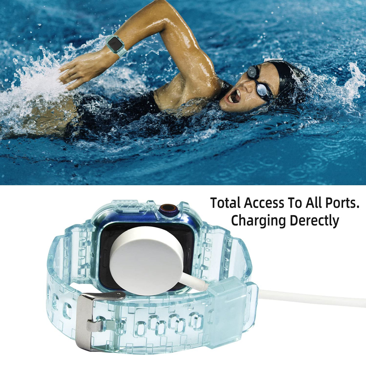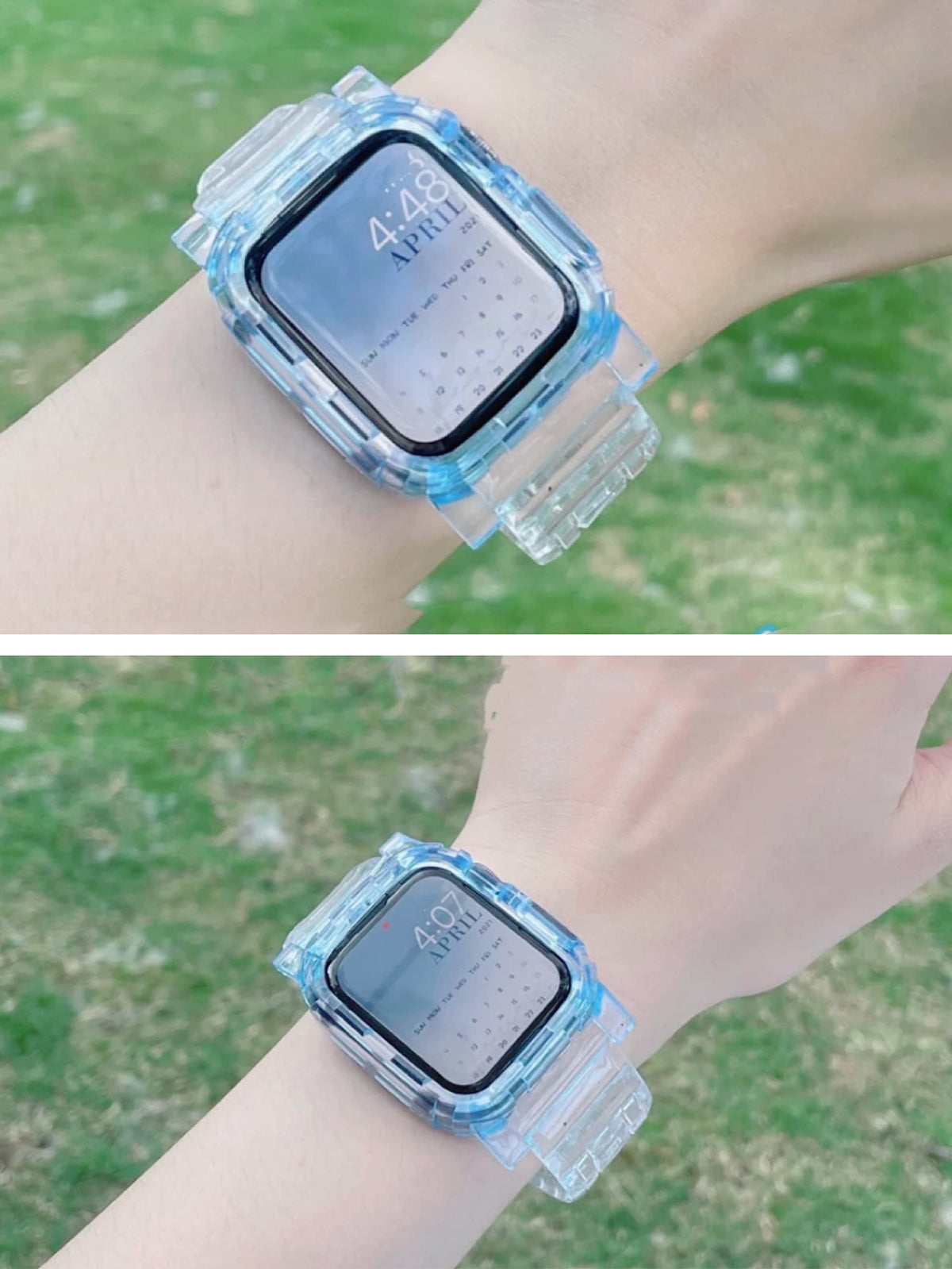 Blingbrione Band Compatible Apple Watch Strap With Case 45Mm/42Mm/44Mm,Silicone Soft Sport Loop Jelly Clear Wristband Women Man