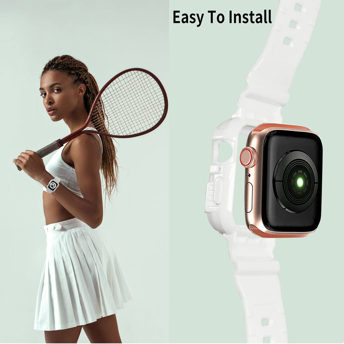 Blingbrione Band With Case Compatible For Apple Watch Band 41Mm/38Mm/40Mm ,Silicone Soft Sport Loop Iwatch Transparent Strap Wri