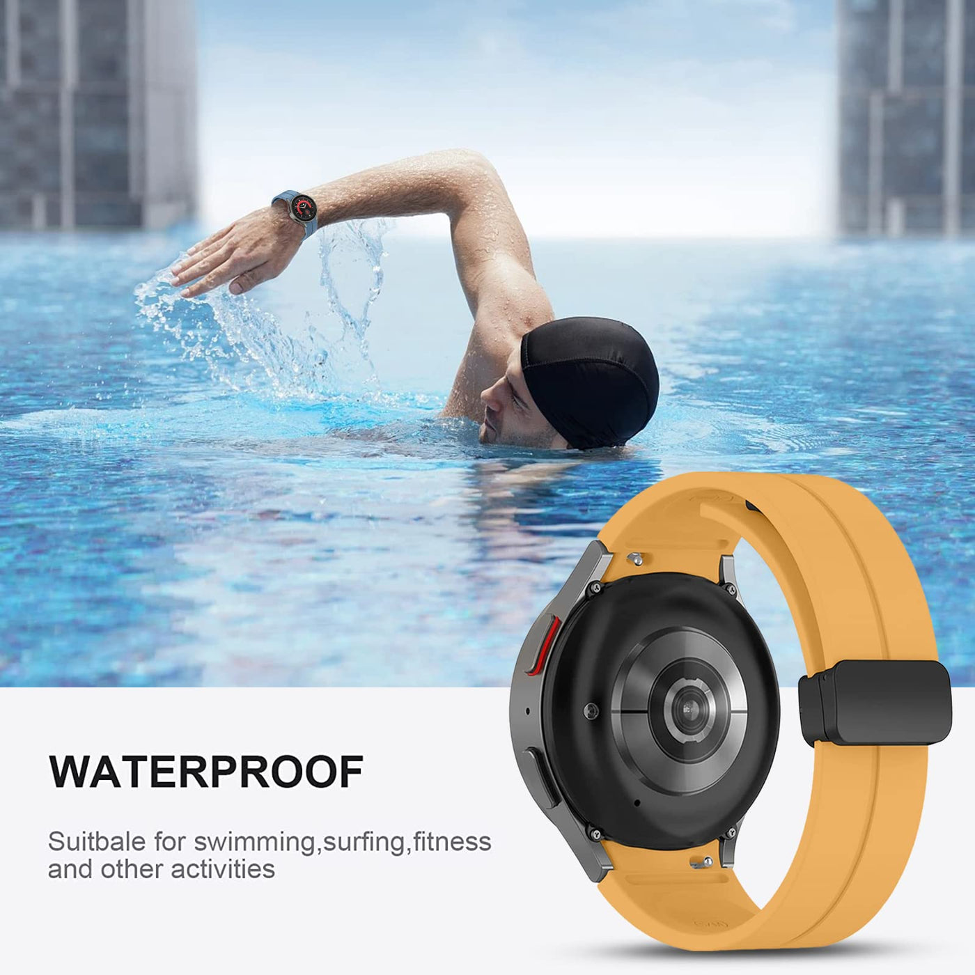 Q: What makes the BMINEN Galaxy Watch strap different from other bands?A: The BMINEN Galaxy Watch strap stands out with its unique folding magnetic buckle design, allowing for quick and easy wear. Additionally, its seamless design and variety of color options provide a stylish look that can match different moods and occasions.