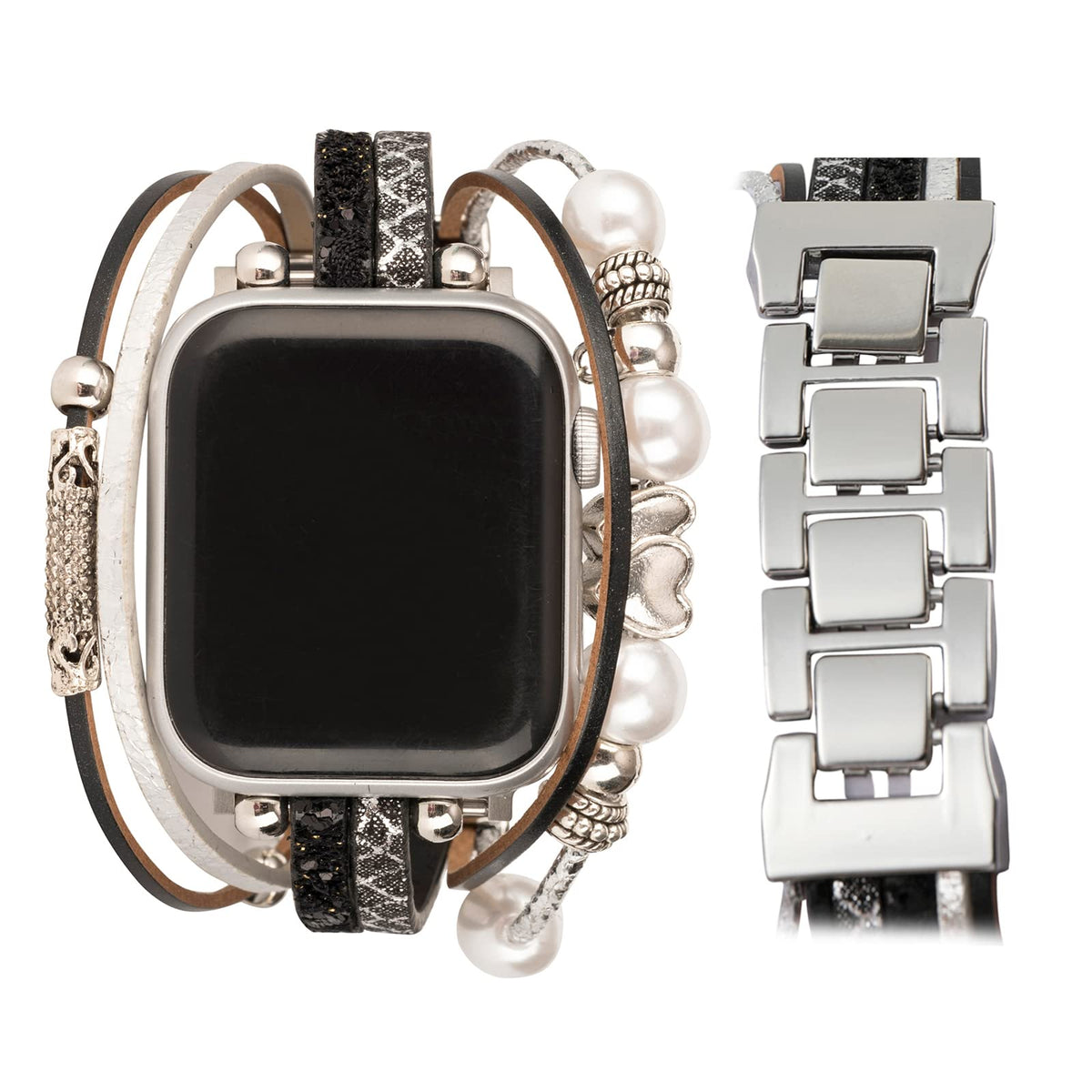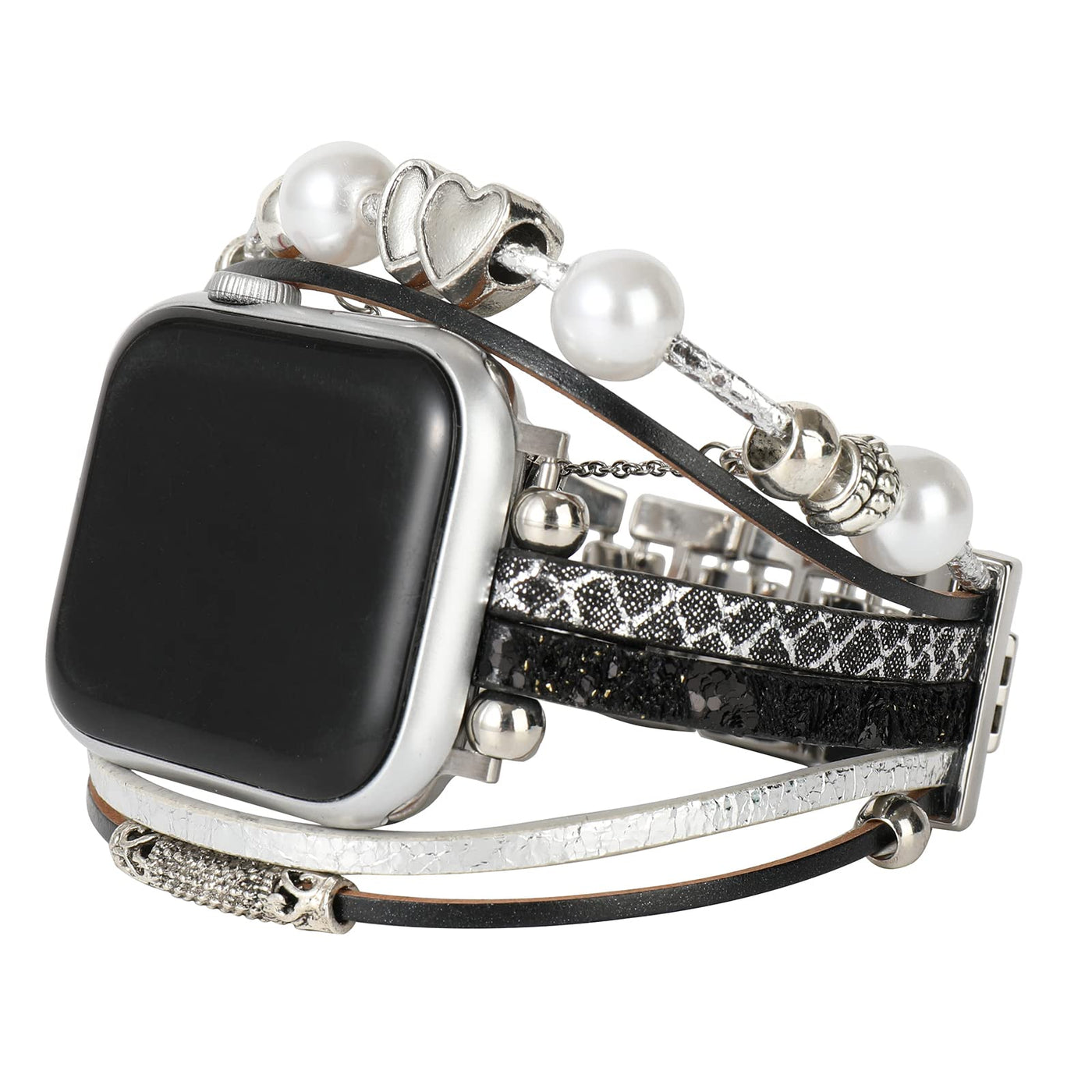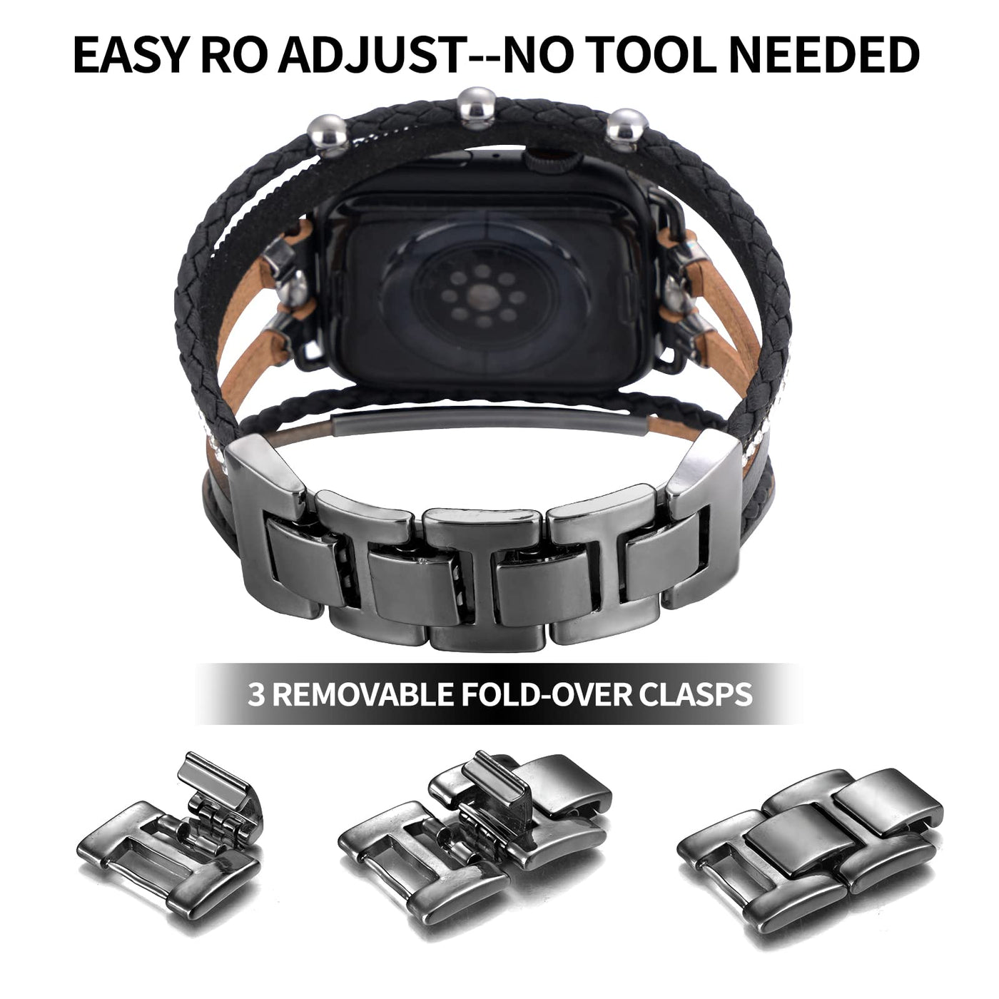 Compatibility: The Leather Band Compatible With Apple Watch 42Mm 44Mm 45Mm 49Mm Ultra Series 9 Series 8 Series 7 Series 6 Series 5 Series 4 Series 3 Series 2 Series 1 Se2 Se Please Choose The Model You Need (On The Back Of The Watch) Material: The Watch Band Compatible With Apple Watch Is Made Of Handmade Leather, Soft And Comfortable Braided Rope, Shiny Rhinestones Decoration And Sturdy Robust Metal Clasps Easy To Adjust: The Bracelets Adopts 3 Folding Clasp Type Links, Simply Remove A Folding Clasp To Resize The Band To Fit Your Wrist Perfectly No Tool Needed Suitable Wrist Size: 384041Mm:63-79Inch, 424445Mm:61-77 Inch Free Additional Links Please Contact Us If You Want To Extend The Band Unique Design: The Leather Watch Band Adopts Unique Leather Strap And Metal Accessory Cross Weaving Design, Shows Perfect Combination Of Modest Luxury And Classic Elegance