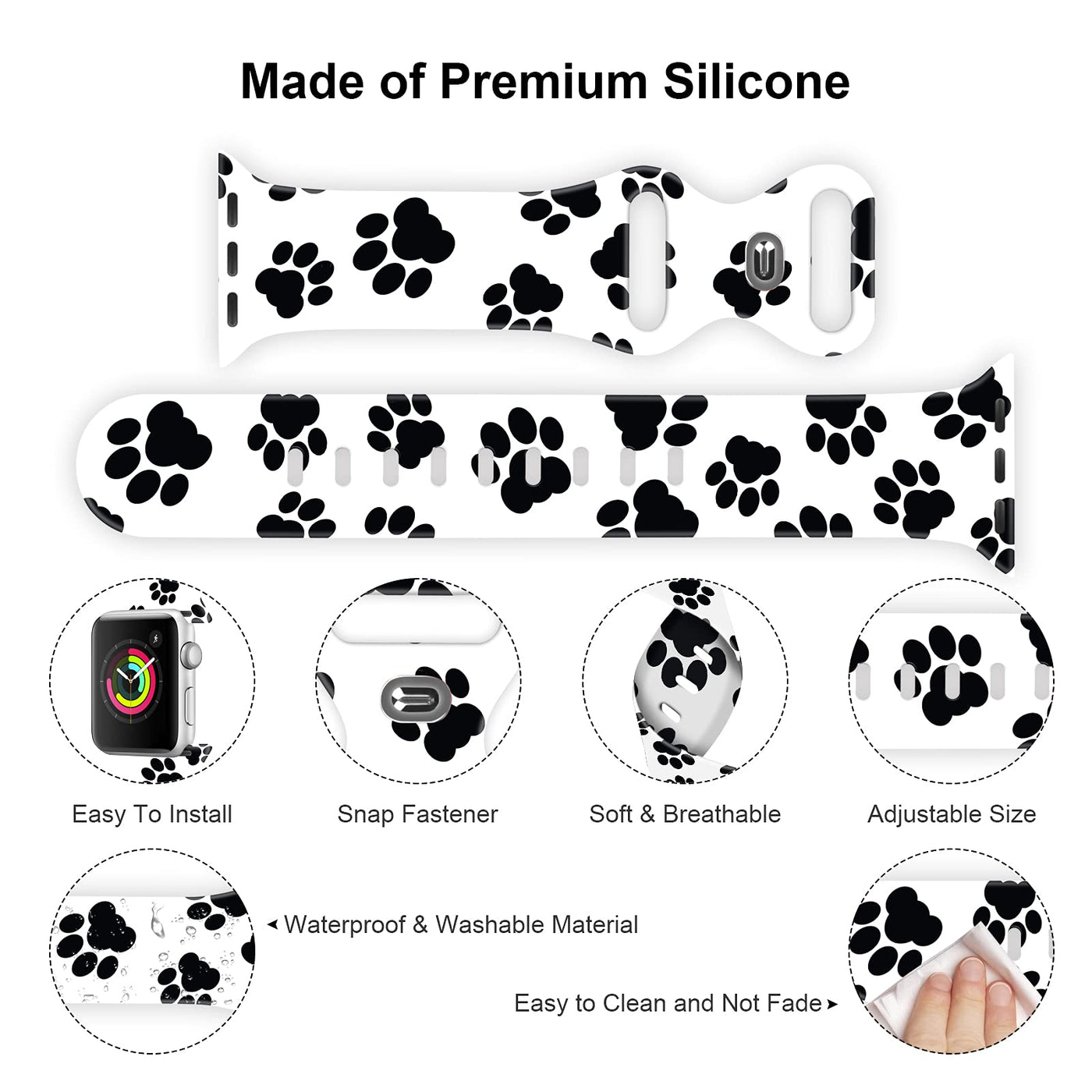Bxxtpk Black Puppy Paw Print Black Cat Paws In White Background Compatible With Apple Watch Band 42Mm 44Mm Soft Silicone Wristba