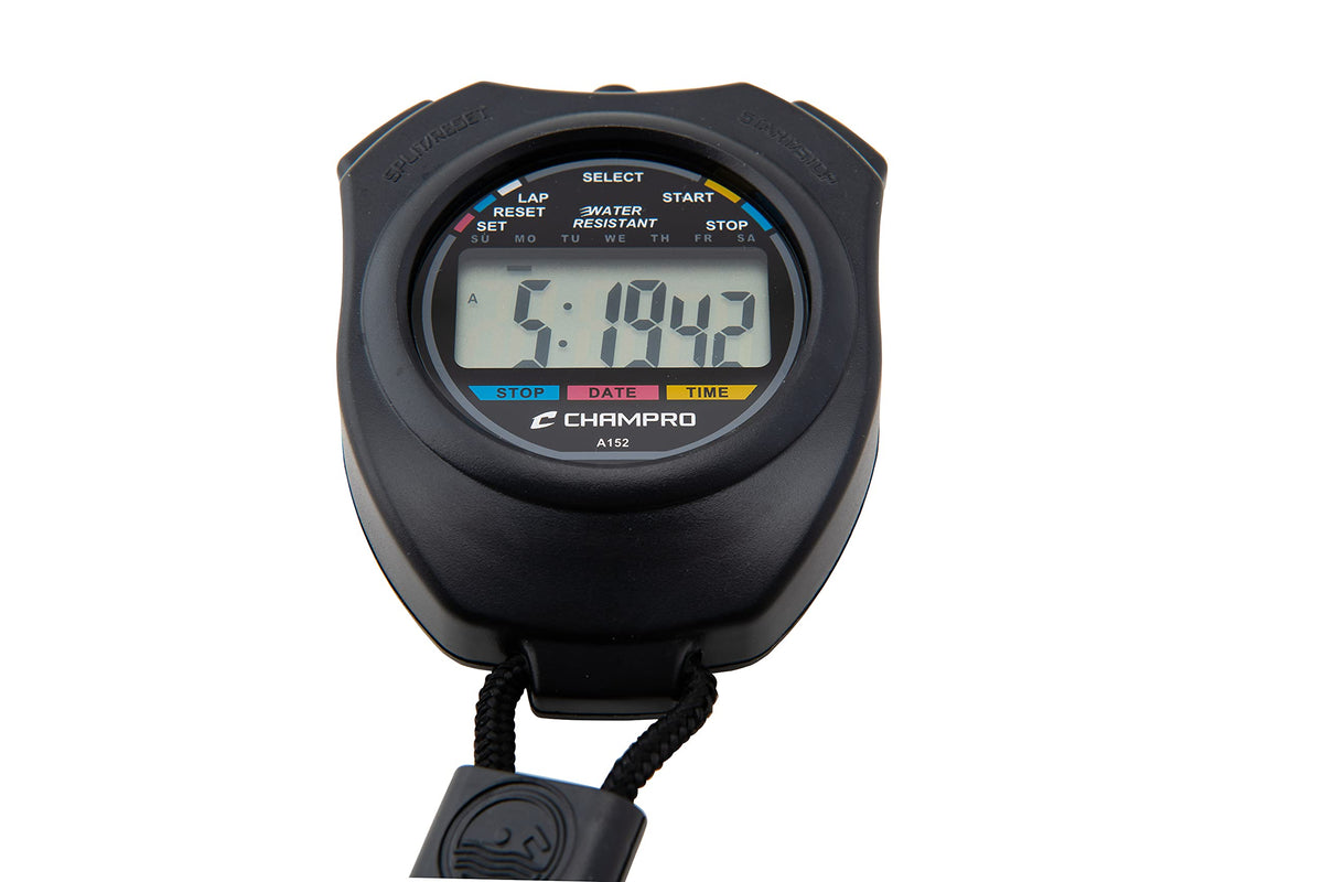 Q: Is the Champro Stop Watch suitable for outdoor use?A: Yes, the Champro Water Resistant Stop Watch is designed for outdoor use, ensuring durability and functionality even in wet conditions.