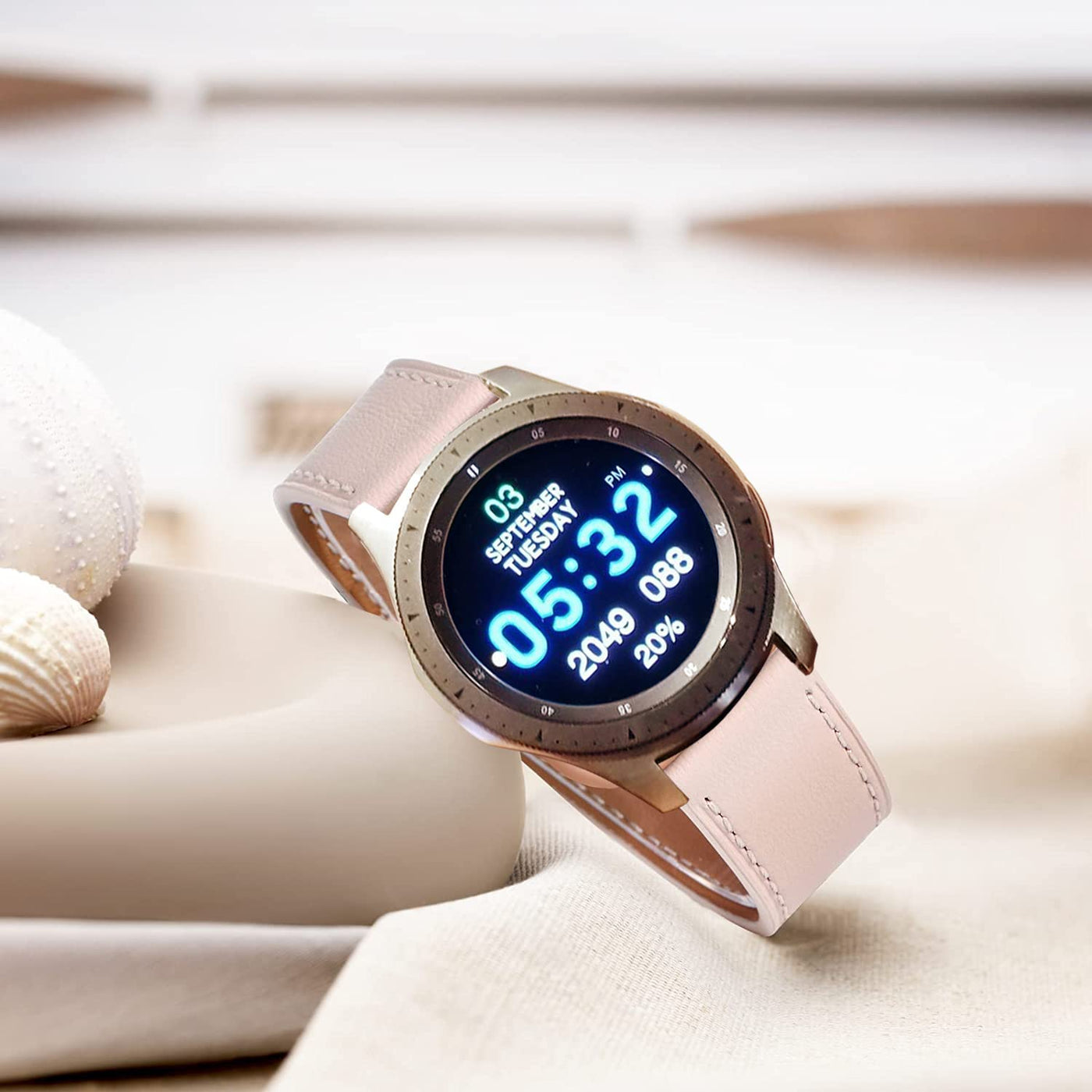 Q: Is this band compatible with Samsung Galaxy Watch 5 Pro and other models?A: Yes, this leather watch strap is universally compatible with Samsung Galaxy Watch 5 Pro 45mm, Galaxy Watch 5 44mm and 40mm, Galaxy Watch 4 Classic 42mm and 46mm, as well as Galaxy Watch 3 41mm and Active 2 40mm and 44mm.
