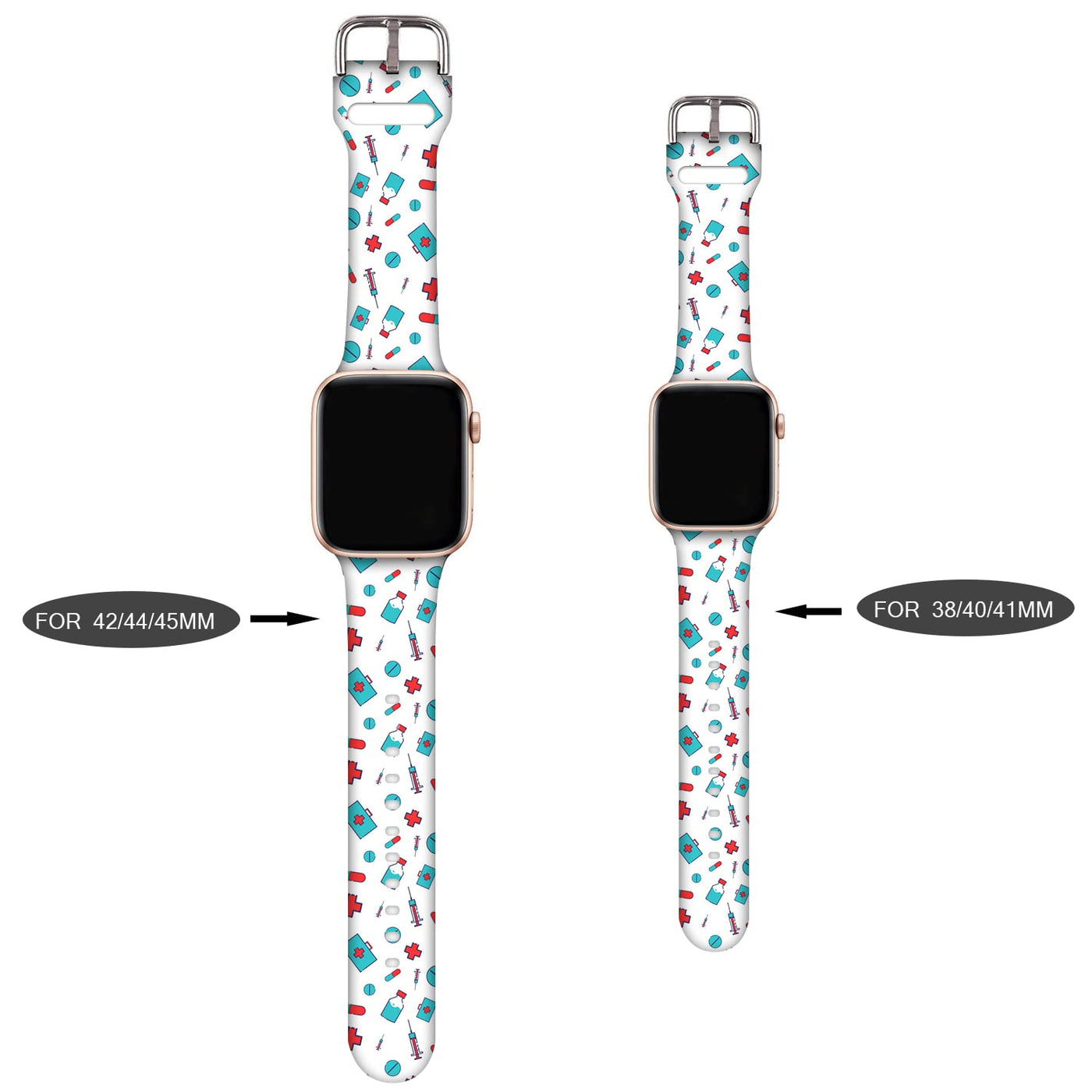 Compatible With Nurse Icons Apple Watch 38/40/41/42/44/45Mm For Women Men,Soft Silicone Nurse Doctor Printed Replacement Wristba