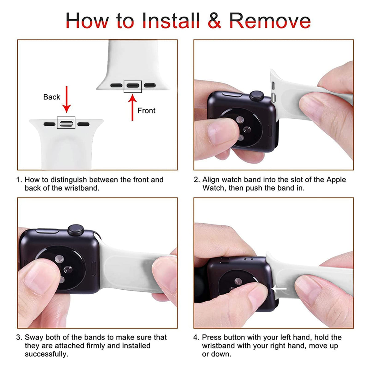 Specification- Material: Soft Silicone- Simple And Elegant Shape, Bright Band Color Brighten Up Your Apple Watch More Stylish, Unique, Dazzling And Eyes-Catching-The Band Is Processed Through Special Craft, Easy To Install Or Remove The Extra Links To Fit Your Wrist Perfectly-It Fits Many Occasions, Perfectly Fit For Runs, Swims, Rides, Workouts, Parties, Climbing, Hiking, Camping, Traveling And More Outdoor Activitiesfeaturea Variety Of Colors, You Can Mix Freely, Make You Different From Others And Fit Any Occasions Perfect For Girls, Men, Women, Kids To Runs, Swims, Rides, Workouts, Parties, Climbing, Hiking, Camping, Traveling And More Outdoor Activitiesa Variety Of Colors, You Can Mix Freely, Make You Different From Others And Fit Any Occasions Perfect For Girls, Men, Women, Kids To Runs, Swims, Rides, Workouts, Parties, Climbing, Hiking, Camping, Traveling And More Outdoor Activitiessoft Sport Silicone Bands Perfectly Fits For Women Girls Wear Breathable Holes Are Easier To Adjust The Length, A Good Choice For Daily Wear And Exercisecompatible Devicescompatible With Apple Watch 38Mm 40Mm 41Mm 42Mm 44Mm 45Mm Se, Series 7, Series 6, Series 5, Series 4, Series 3, Series 2, Series 1Package Include1* Wristbandwarningto Avoid Discoloration Or Tarnishing, Youd Better Take Off Your Lovely Bands When Washing Your Handstry Your Best To Avoid Contact Between The Band And Hard Objects To Avoid Scratchesplease Measure Your Wrist And Choose The Correct Watch Model & Size Before Purchasing