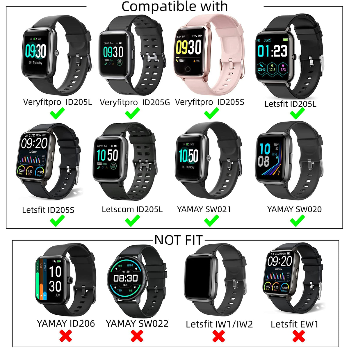 Compatible Models: -- Replacement Bands Compatible For Id205L,Id205G,Id205S,Sw020,Sw021,Sw023,Sw025 For Willful Yamay Letscom Letsfit Smartwatch Compatible With Willful Id205L,Sw021,Id205S,Sw025,Id205G,Sw023,Id205,Id205U Bandscompatible With Yamay Sw020,Sw021,Sw023,Sw025 Smart Watch Bandscompatible With Letsfit Id205L,Id205S Watch Bandcompatible With Letscom Id205L,Id205S,Id205G,Id205U Bandcompatible With Willful Id205L,Sw023 Replacement Bandcompatible With Yamay Sw023,Sw025 Wristbandscompatible With Letsfit Id205L Watch Bandbrcompatible With Letscom Id205L Strap How To Choose The Size: -- Two Adjustable Sizes Are Available For Id205L,Id205G,Id205S,Sw020,Sw021,Sw023,Sw025 For Willful Yamay Letscom Letsfit Watch This Band Fits Most Adults Wrist,Small Size Fits 51Inch-75Inch Wrist,Large Size Fits 61Inch-90Inch Wrist (Please Measure Your Wrist Before Purchase) The Wristband Is Designed With Aluminum Buckle, Easy To Install And Adjustable, Holds Your Smartwatch Band Securely In Place Remium Materials: -- Made Of Environment Protection Silicone, Duarable, Soft Comfortable, Long Time Using Without Tear Or Fading Off, Anti Dust, Dirt, Sweaty, Waterproof Slim And Proper Thickness For Lightweight, Provide A Nice Wearing Feeling On Wrist 3 Colors: -- Multiple Fashionable Patterns And Colors For You To Choosethe Strap Is Suitable For Unisex Adults,Women And Menelevates Your Style For Every Occasion Product Include: 3 Watchband