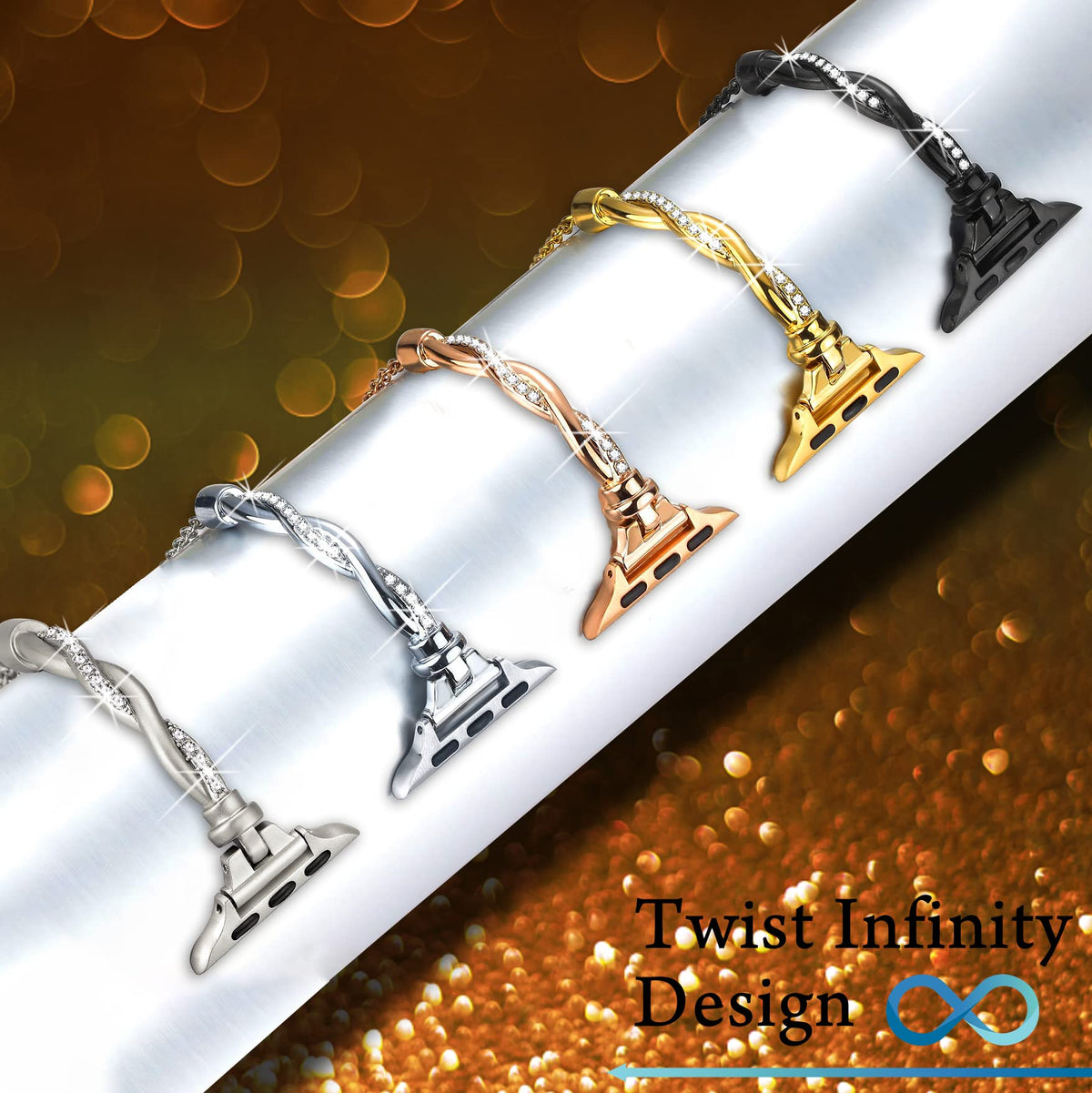 Dilando Bling Metal Twist Bracelet Band Women Are Compatible With Apple Watch 40Mm 38Mm 45Mm 44Mm 42Mm 41Mm, Iwatch Series 7 6 5 4 3 2 1 Features: Style: Narrow Bling Metal Apple Watch Band Bracelet, Cute Dressy, Jewelry Style Material: Premium Metal And High Quality Rhinestonediamonds Sizes: For Women Wrists 55A-78A, Size Adjustable By Drawstring Button Colors: Gold, Rose Gold, Silver, Black, Starlight Occasions:Nbsp Dressy And Casual Both Cute Gift Idea For Her:Nbsp Great Gift Ideal For Wedding, Valentines Day Etc Main Selling Point: 1Nbspunique Designer Twist Rope Design Apple Watch Bracelet 2Nbspbling, Sparkle Under The Sun And In The Nbspnight 3Nbspluxury, Dressy, Fancy 4Nbspdurable And Comfortable Nbspwhat You Will Get---1Dressy Band 1 Cute Tin Gift Box Nbsp