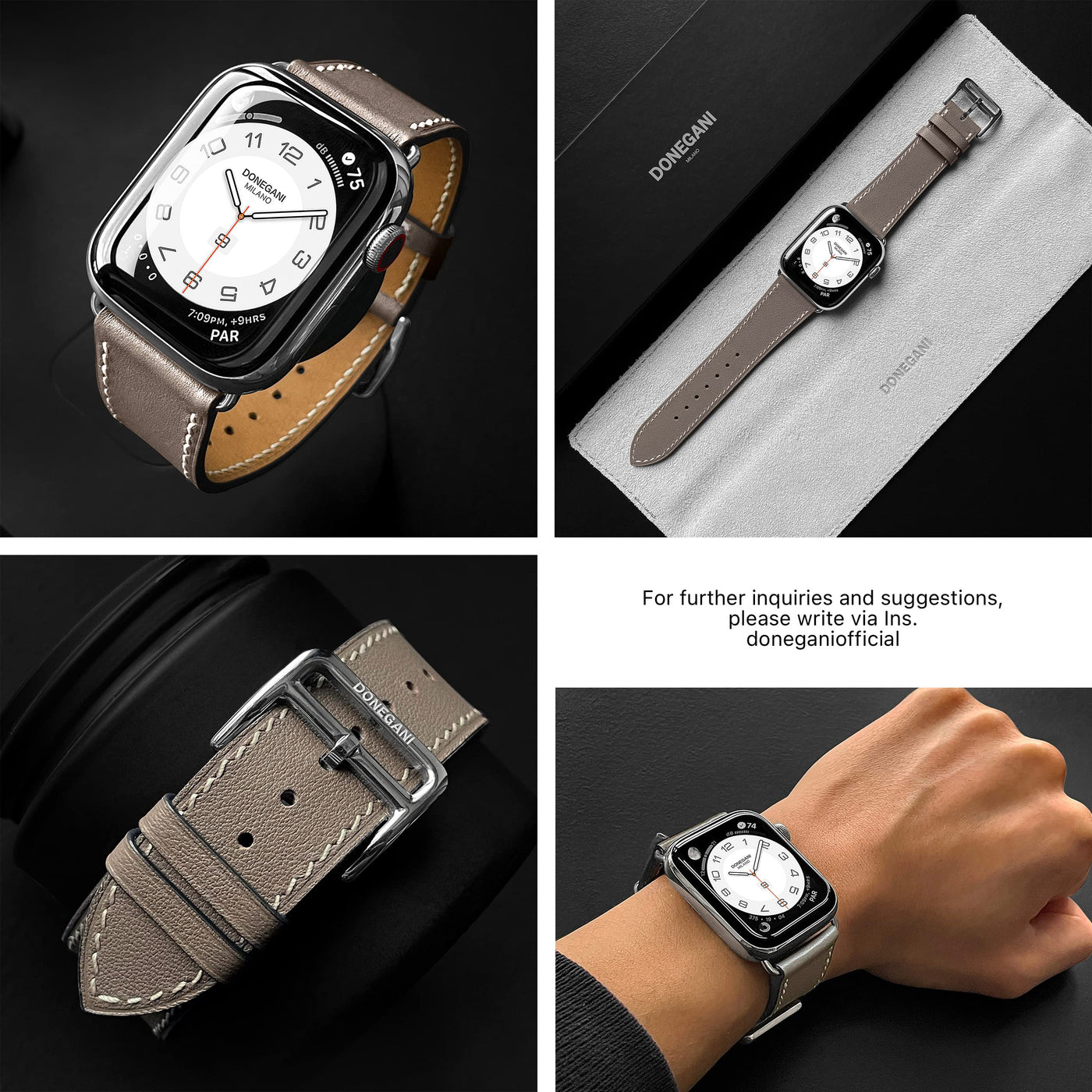 Q: What distinguishes the DONEGANI LB1 Leather Band from other Apple Watch bands?A: The DONEGANI LB1 Leather Band stands out due to its handcrafted quality, precision machined stainless steel components, and the use of high-quality materials, ensuring both comfort and elegance.