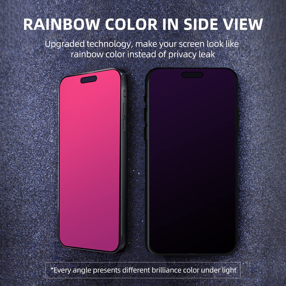 ?Briliant Color? - Bring Your Iphone 14 Pro Max Different Violet Blue Gradient Color From Different View Angles Under Light. The Stronger Light Indoor Or Outdoor, The Brighter Privacy Screen Protector Color Will Present. Make Your Iphone Unique And Prettey Cool In The Crowd. | ?Privacy Screen? - With Our Unique Grating Technology, This Privacy Screen Protector Has 68 Degree View Angle. You Can See It Clear Face Straightly To The Screen, But People Beside You Just Can See A Violet Blue Gradient Color. Protecting Your Privacy And Sensitive Information Well In Malls, Buses, Metro, Restaurant Or Other Public Area. | ?Anti Blue Light Protection? - Inner Blue Light Blocking Layer Will Keep 450-473Mm Blue Light From Your Phone. Let Your Eye Feel Comfortable Even In Long Time Viewing Phone, And Healthier. * The Blue Light Blocking Layer Will Make The Screen A Bit Dimmer. | ?Protect Your Phone Screen? - Perfectly Compatible With Iphone 14 Pro Max. With Multiple Tempered Glass Layer, It Protect Full Screen With Edge To Edge, Comprehensively Preventing Your Iphone From Any Scratch, Crush, Dust, And Bring Your The Same Touchness Like The Original Screen. | ?Touch Sensitive & Easy Installation? - Tempered Glass Make A Perfect Balance Between Privacy Protection And Sensitive Touch, Ensuring Quick App Operation, Sensitive Game Playing & Smooth Text Input. Inside The Package, It Comes With 1 X Privacy Screen Protector, 1 X Applicator Frame, 1 X Tools Bag.