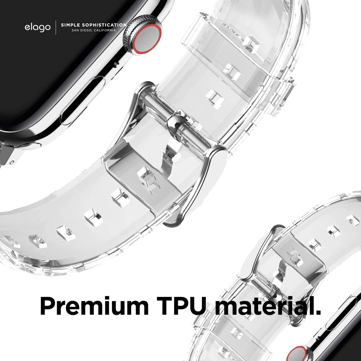 Q: Can I swap the elago Clear Band with other straps?A: Yes, the elago Clear Band features an attachable buckle that allows for easy interchangeability with other straps, letting you customize your watch band according to your outfit or mood.