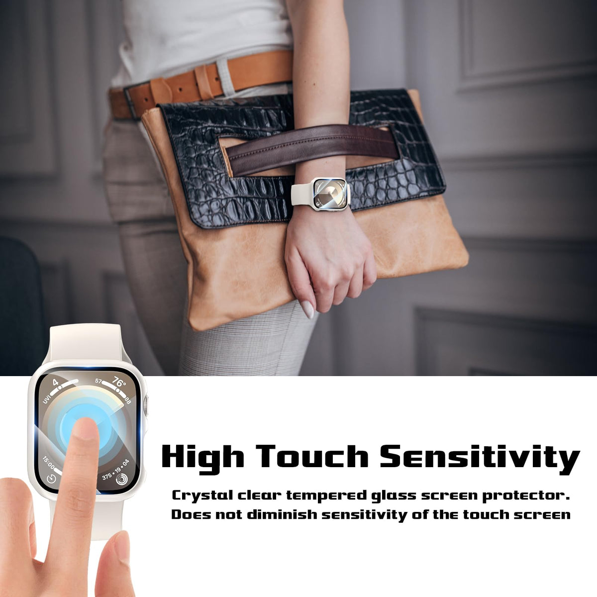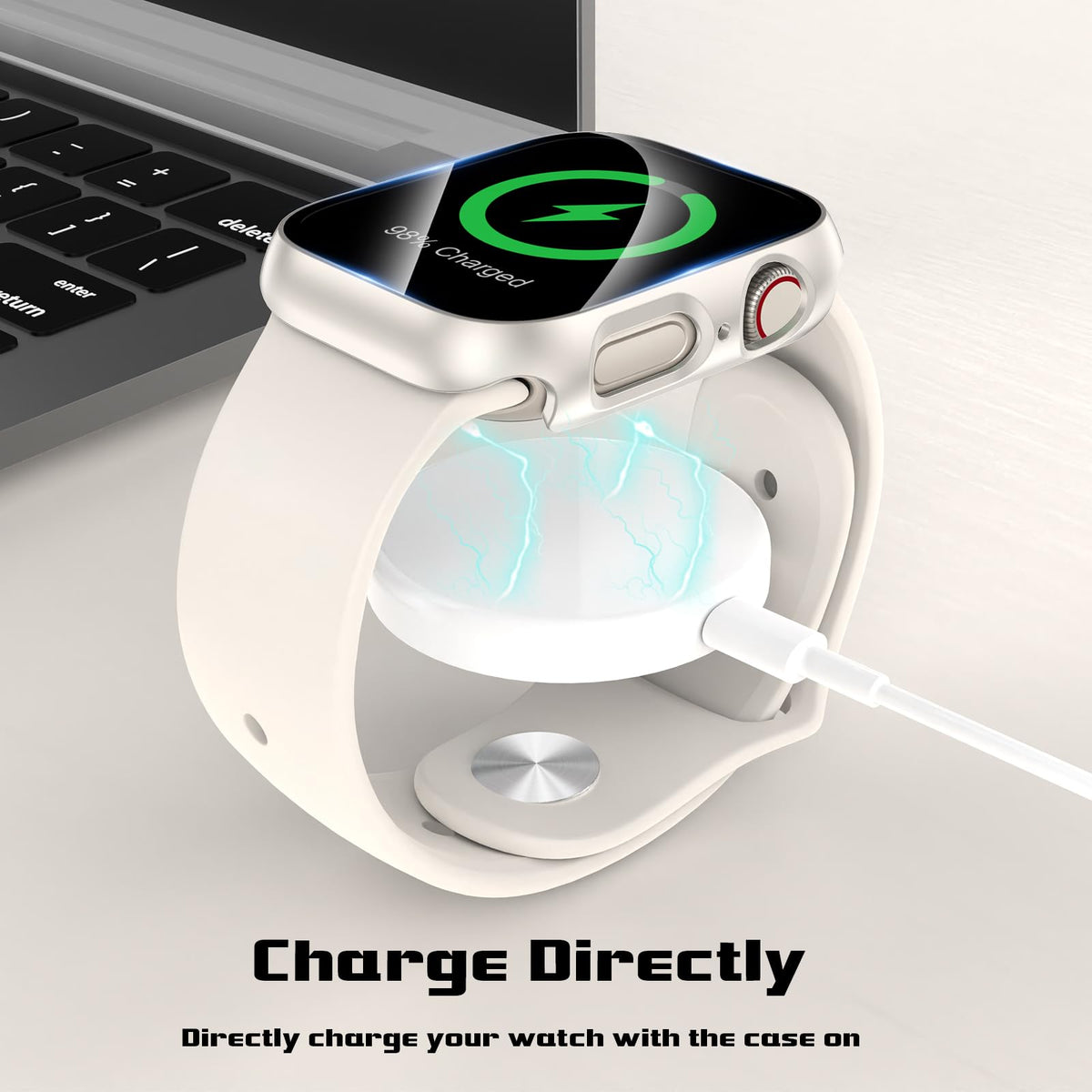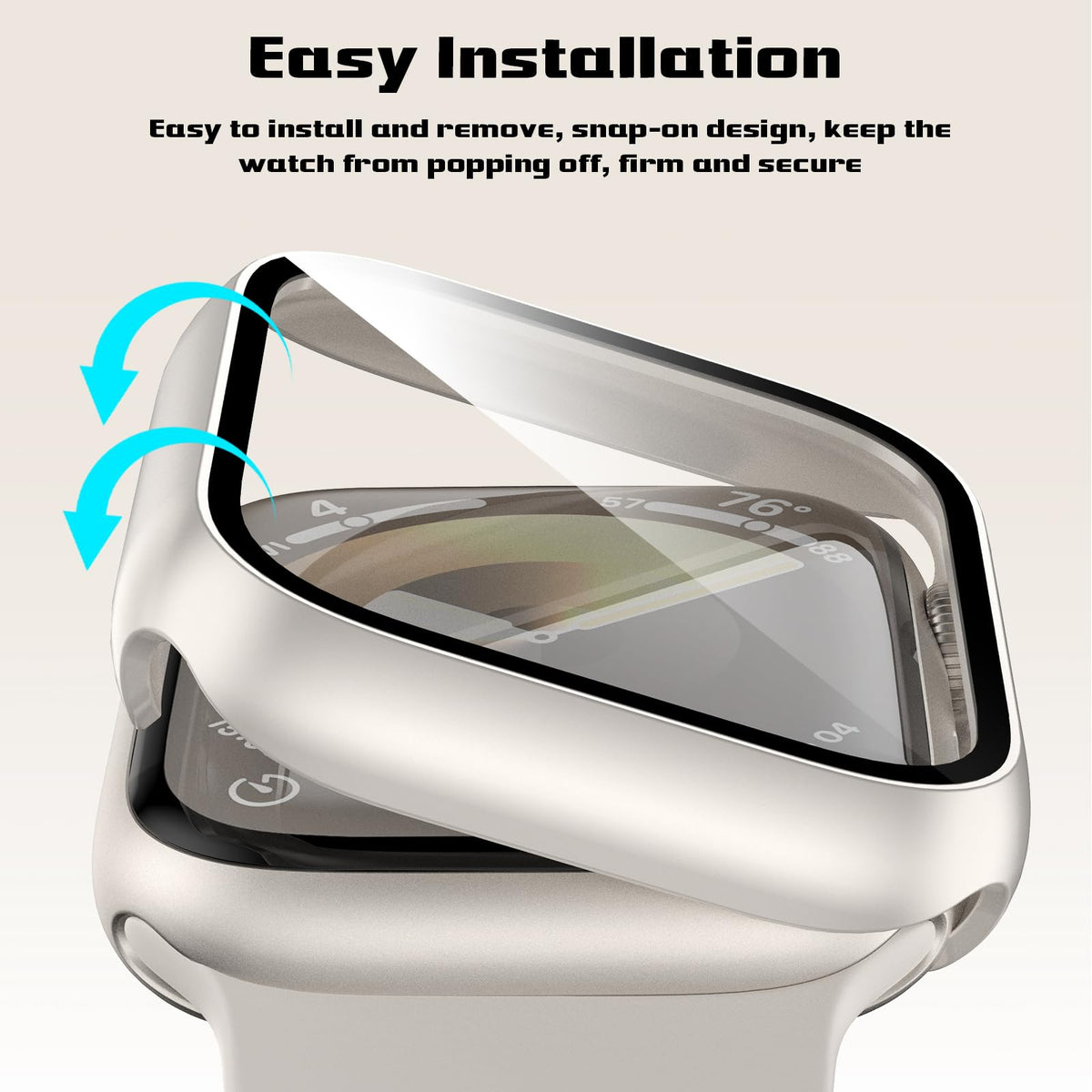 Ewuonu Apple Watch Series 9 Case 41Mm Starlight Compatible With Apple Watch Series 9 Series 8 Series 7, Built-In Tempered Glass Screen Protector For Apple Watch 9/8/7 41Mm ?Compatible: The Pink Apple Watch Case Compatible For Apple Watch Series 9 Series 8 & Series 7 ( 41Mm). ?Charge Directly: The Apple Watch Bumper Series 9 Does Not Affect The Normal Charging Of The Watch, You Can Charge The Watch Directly With It. ?Compared With Tpu, Pc Watch Case Never Change It'S Clear. ?Natural Touch: The Watch Cover With High-Sensitivity, Bubble-Free, High Transparency And Ultra-Thin Design, Does Not Interfere With The Screen Usability At All. Touch Screen Works Well With The Watch Case. ?Easy Take On And Off: This Apple Watch Case Series 9 Easy Take On And Off And You Do Not Need To Take Off Your Watch Band. Step 1 Clean The Watch Screen. Step 2 Install The Crown Part First. Step 3 Dont Press The Screen Protector To Avoid Breaking. Step 4 Press The Frame And Install It Completely. ?Kindly Remind: Doing Sports May Cause The Moisture (From Perspiration) To Be Trapped Between The Hard Watch Case And The Watch Screen. This Is Due To The Nature Of The Apple Watch Cover As It Does Not Stick To The Screen. When Fog Up Between The Apple Watch Series 9/Series 8/Series 7 Case And The Screen, Please Clean The Water With A Cloth Or Wipes. ?Anti-Scratch The Series 9 Watch Screen Protector Protects The Screen And Four Sides From Drops, Bumps; Scratch-Proof, Anti-Collision, Anti-Scratch. It'S Smooth, Crystal Clear Pc Case. ?Package Contents: 2 X Apple Watch Case Starlight 41Mm