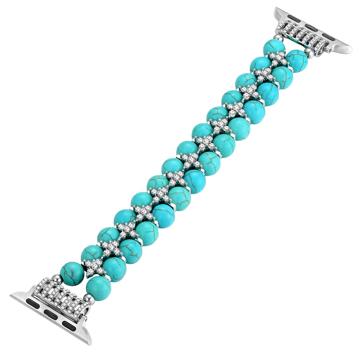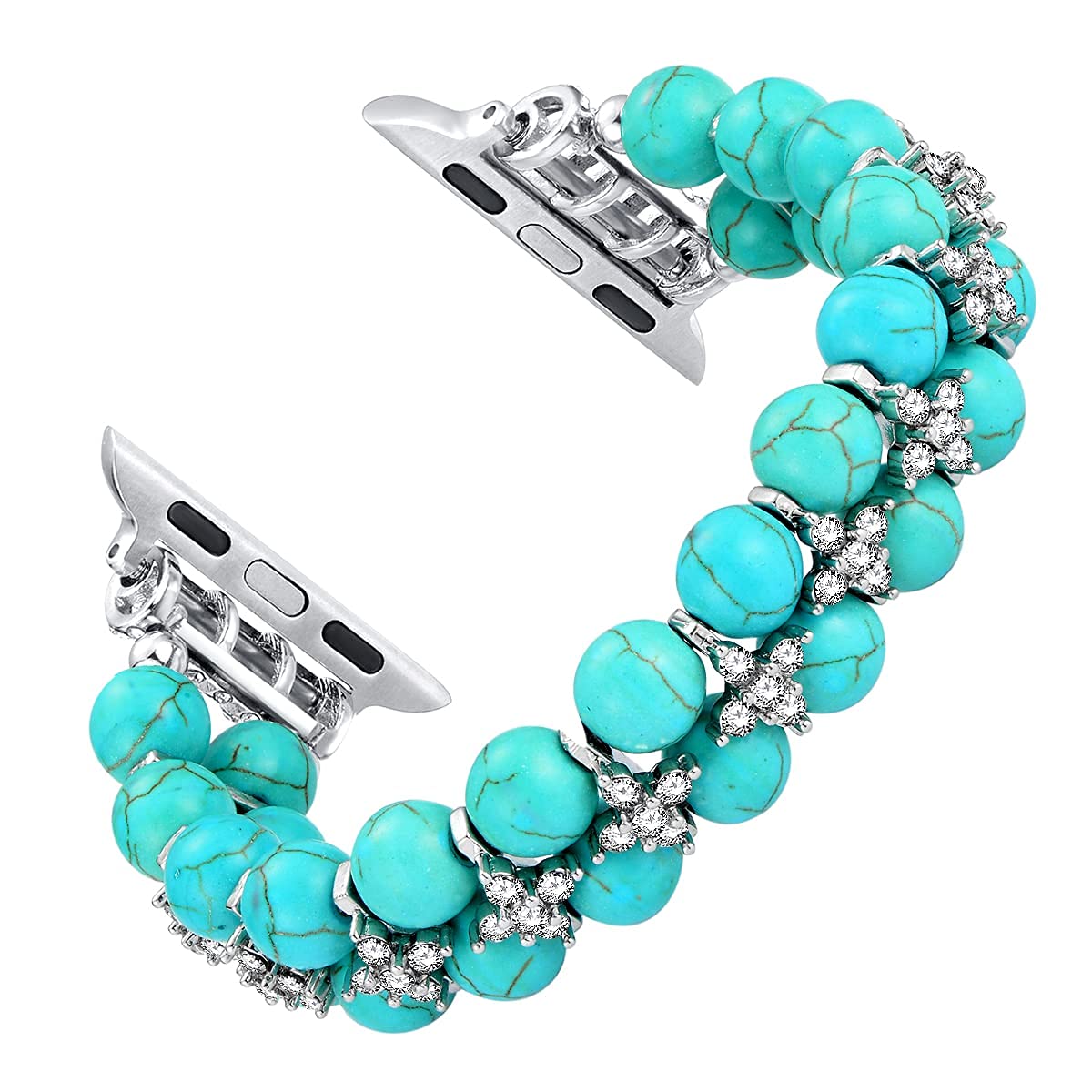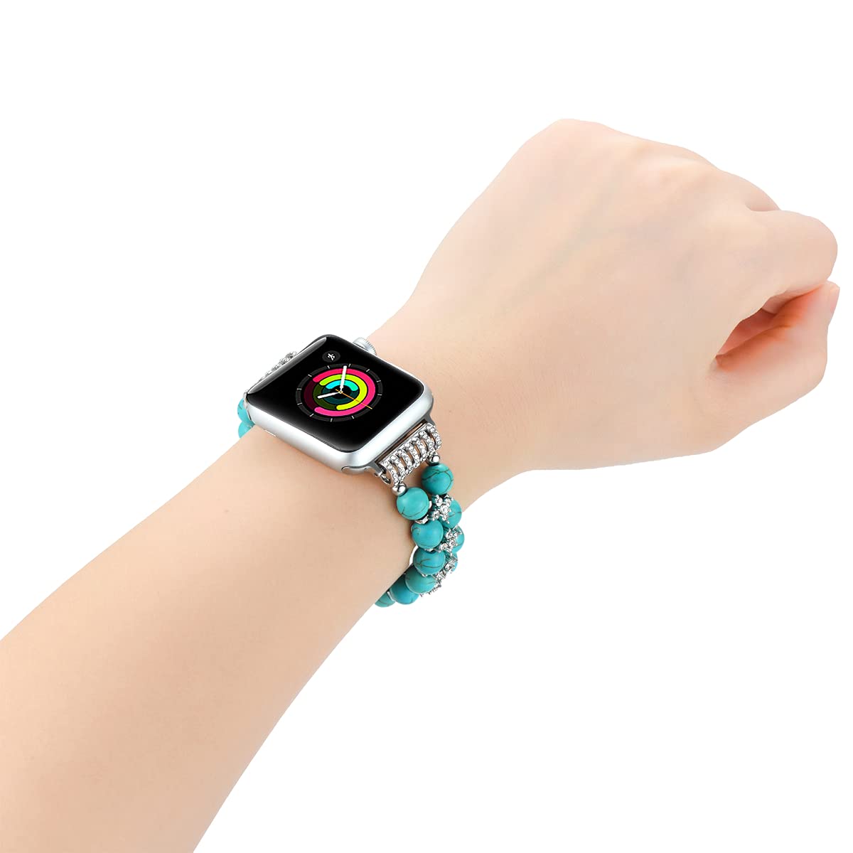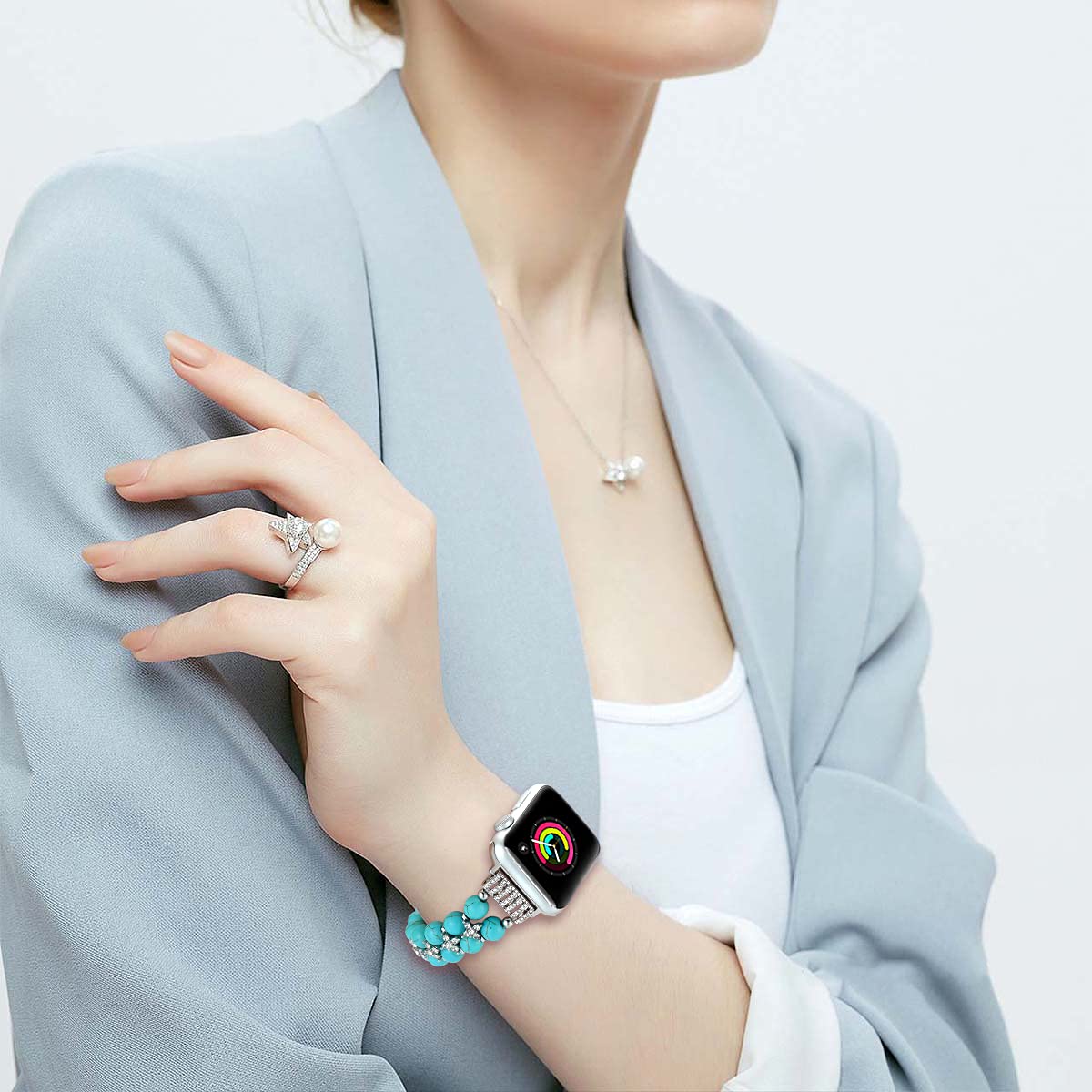 Fastgo Compatible With Turquoise Pearl Apple Watch Band Beaded, Women Handpicked Stretch Bracelet Bling Fancy Strap For Iwatch U