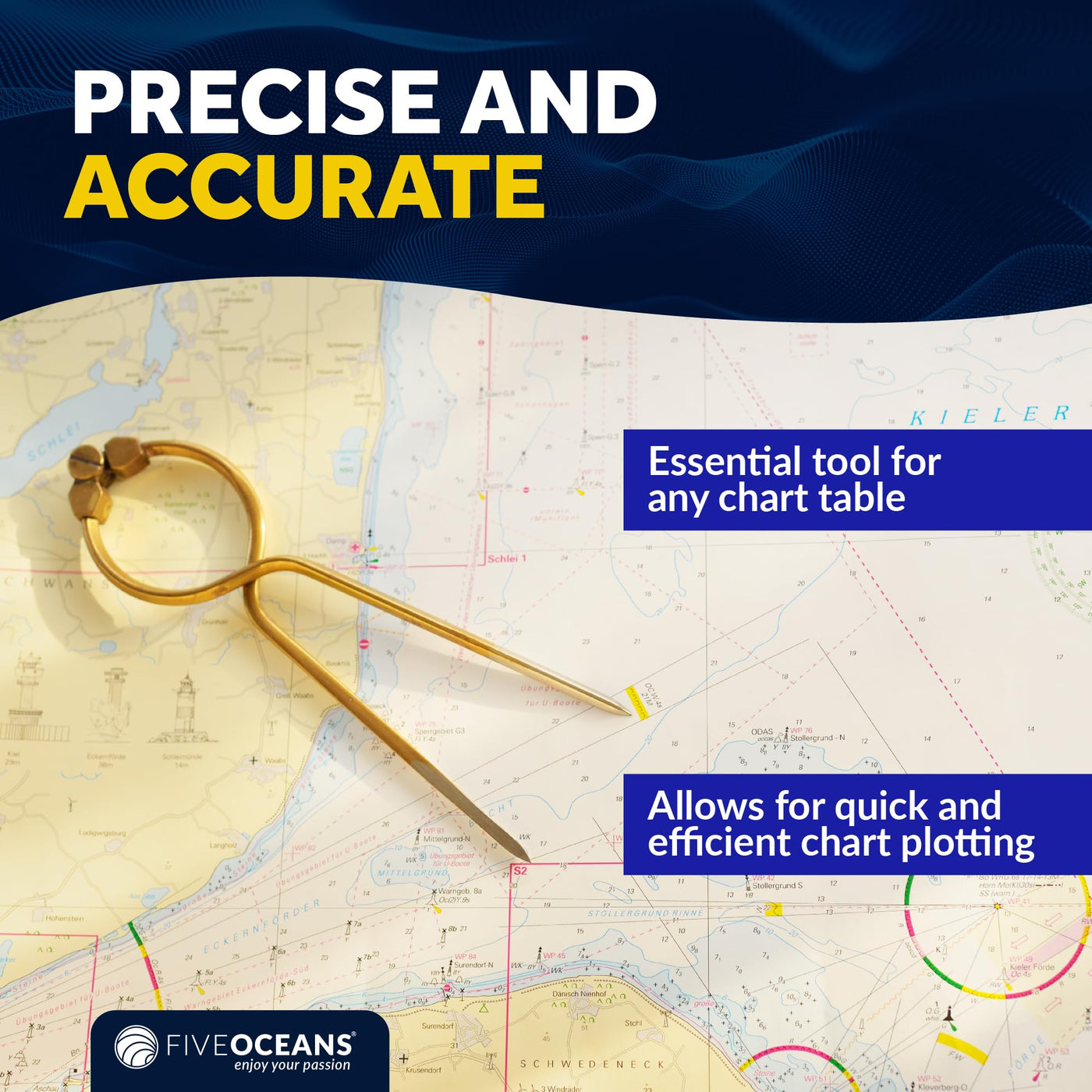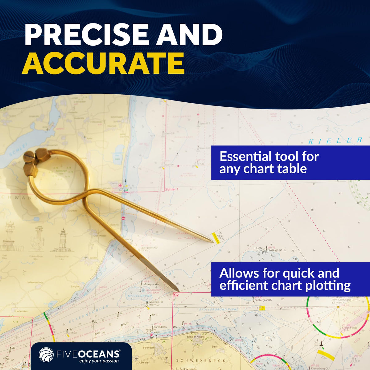 Deluxe Brass Finish: Built To Last. The One-Hand Divider Features A Premium Brass Finish, Ensuring Durability And Reliability For Years To Come.Compact And Portable: The 7-Inch One-Hand Divider Is Small Enough To Store In A Drawer Or Utensil Caddy, Making It Easy To Take With You Wherever You Go. Its Lightweight Design Makes It Convenient To Use Anytime, Anywhere.Elegant Navigation Tool: This Divider Can Be Operated With One Hand, Leaving The Other Free For Plotting Tools Or Instruments.Excellent Gift: An Exceptional Gift For Boaters, Enhancing Their Navigational Precision And Making Their Time On The Water Even More Enjoyable.Precise And Accurate: The Five Oceans One-Hand Divider Is An Essential Tool For Any Chart Table. Easily Operable With A Single Hand, It Allows For Quick And Efficient Chart Plotting.Product Number: Fo-1413