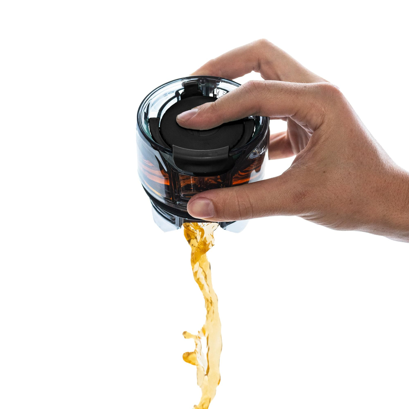 Q: How does the dispensing mechanism work on the Flaskap Madic 6?A: The dispensing mechanism is user-friendly. Simply untwist the button to fill the reservoir, then press the Fun Button to dispense exactly ½ ounce of your favorite liquor directly into your tumbler.
