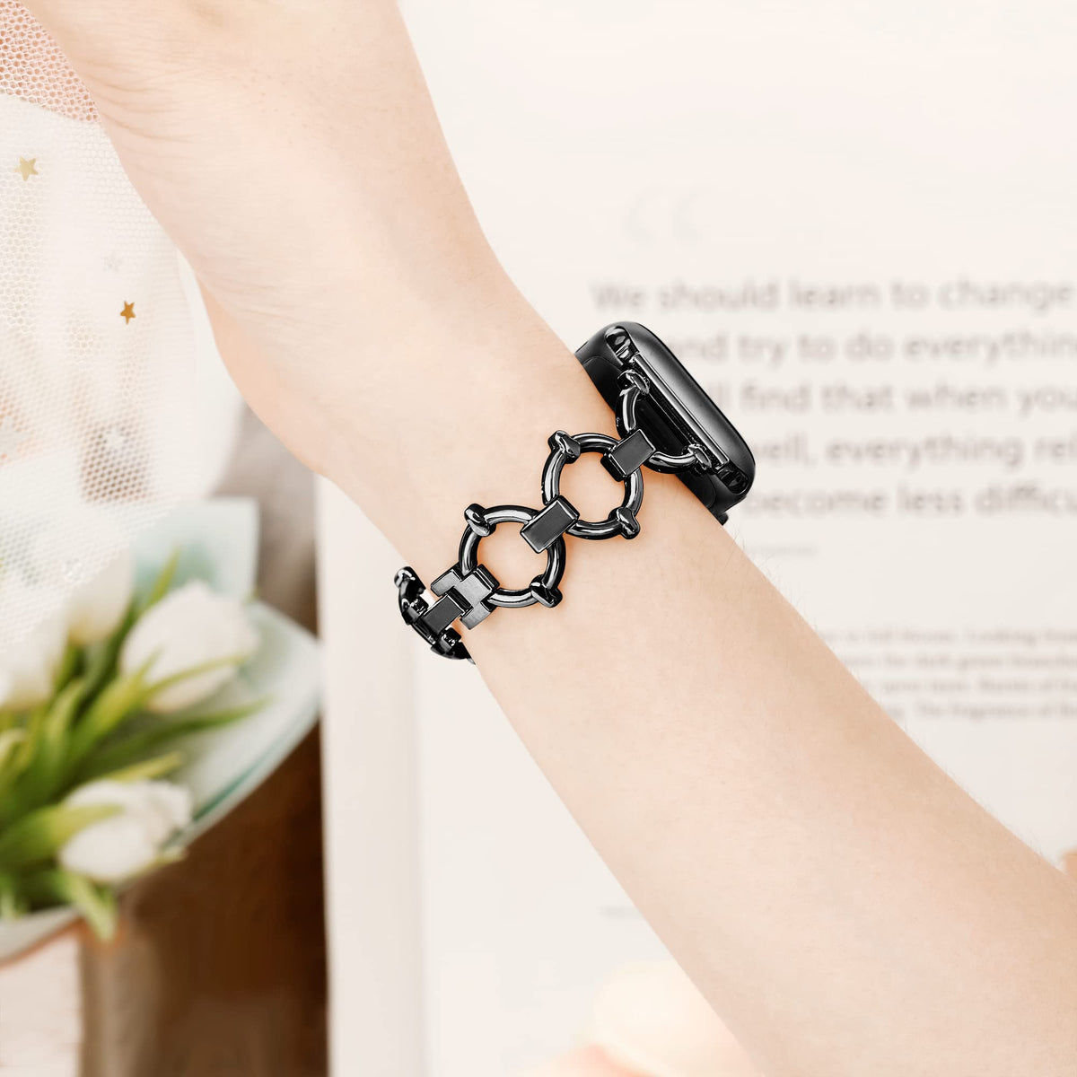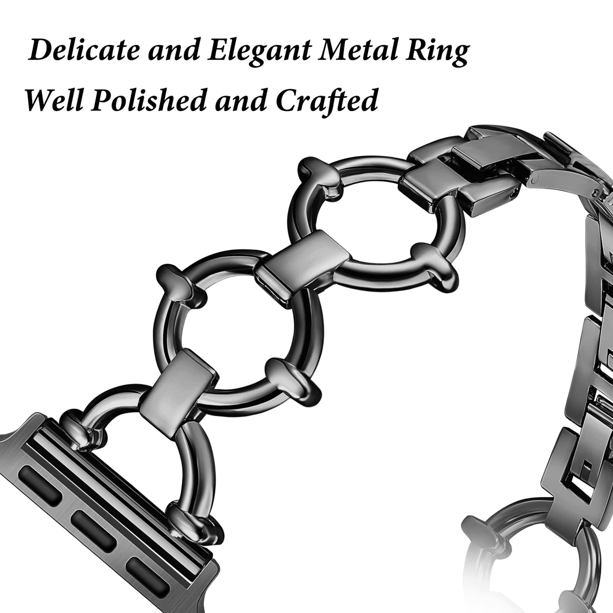 Both Sides Of The Band Are Elegantly Circles And Semi-Circles, Which Will Enhance Your Everyday Style In A Sleek And Minimal Way Its Thin And Airy Appearance Makes Your Apple Watch Feminine And Graceful If Youre Looking For A Quality, Subtle, And Elegant Watch Band, Youve Come To The Right Place &Nbsp The Unique Glossy Circle Design Of The Band Is Gorgeous And Eye-Catching, Which Is Suitable For The Dressing Styles Of Vintage, Smart Casual, Literary, Sweet, Etc &Nbsp Our Fashionable Slim And Light Band Is Greatly Skin-Friendly, Breathable And Durable, For Its Made Of Superb Alloy Materials And Well Polished Every Detail &Nbsp The Ring-Shaped Apple Watch Band Is Compatible With 45Mm 41Mm 44Mm 42Mm 40Mm 38Mm Apple Watch Series 7 6 Se 5 4 3 2 1 The Connectors And Clasps Of The Band Are Particularly Reliable And Safe, Which Will Lock Your Watch Firmly Enough &Nbsp Receive Compliments This Attractive Watch Band Will Be Your Best Accessory Choice To Enhance Your Image And Help You Easy To Receive Compliments It Is Perfect To Match Your Different Clothes Every Day, For Work, Date, Party, Shopping, Show, Any Leisurespecial Occasions &Nbsp Easy To Adjust With One Of The Easiest Length Adjustment Methods, The Apple Watch Band Can Be Directly Adjusted The Length By Opened The Clasp With Your Finger, And No Tool Is Needed &Nbsp Reat Surprise Gift For Its Extraordinary Design And Wonderful Meaning, We Believe It Will Be A Perfect Gift For Family And Friends On The Birthdays, Valentines Day, Mothers Day, Christmas, Thanksgiving And Other Festival