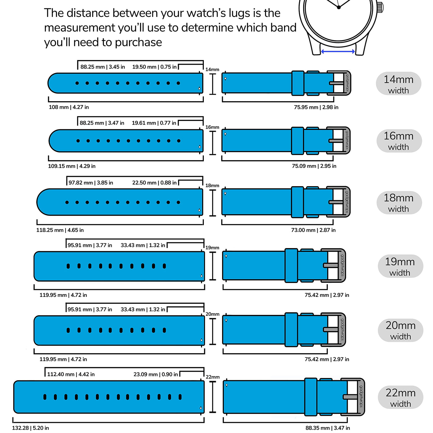 Q: What sizes are available for the GadgetWraps nylon watch band?A: This nylon watch band comes in various sizes, including 14mm, 16mm, 18mm, 19mm, 20mm, and 22mm. The specific item you are purchasing is a 16mm watch band, suitable for compatible watches.