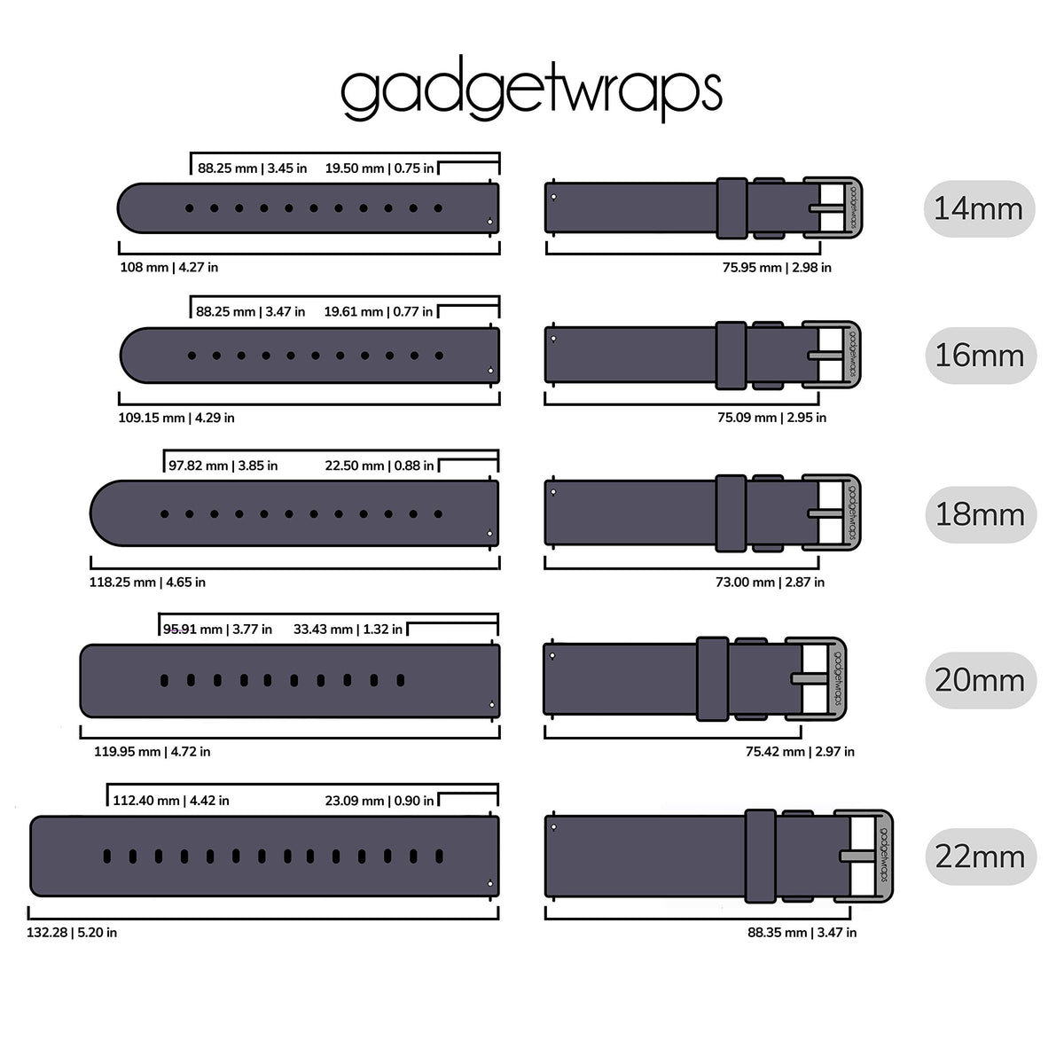 Q: Is the GadgetWraps watch band suitable for all wrist sizes?A: Yes, the GadgetWraps nylon watch band is adjustable and crafted to fit various wrist sizes. It is available in multiple widths, including 18mm, ensuring a comfortable fit for both men and women.