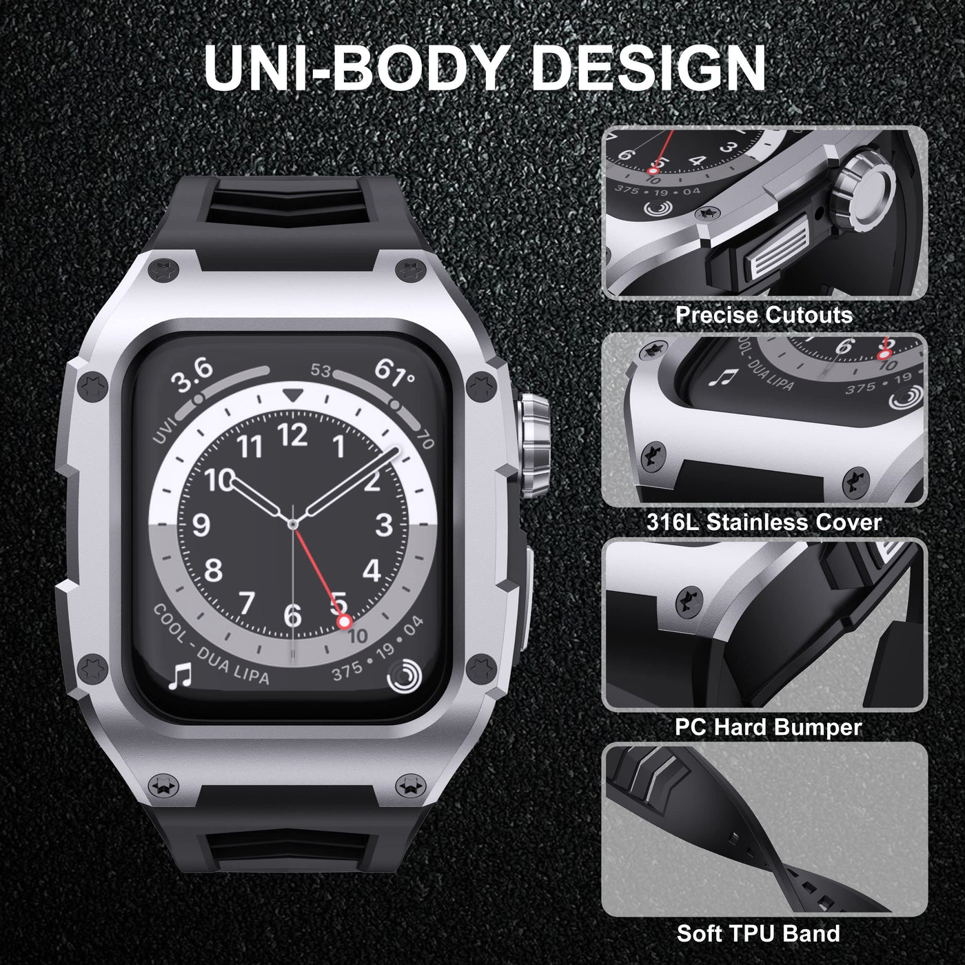Gelishi Band Compatible With Apple Watch Band Series 7 & Series 8 45Mm, Men Rugged Case Bumper Heavy Duty Stainless Metal Cover