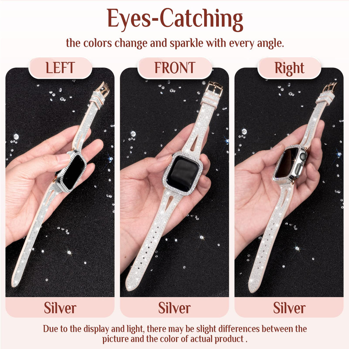 Goton Bling Band + Case For Apple Watch Bands 45Mm 44Mm 41Mm 40Mm 38Mm Series Se 6 5 4, Women Glitter Silicone Thin Strap + Bump