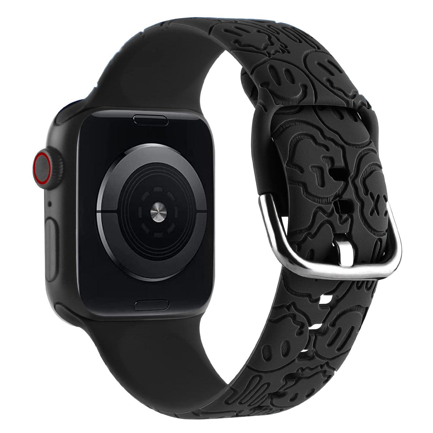 Q: Is the Halloween Ghost Engraved Silicone Band compatible with all Apple Watch models?A: Yes, the Halloween Ghost Engraved Silicone Band is compatible with a wide range of Apple Watch models, including Series 1 through Series 9, SE, Ultra, and Ultra 2. It fits sizes 42mm, 44mm, and 45mm.