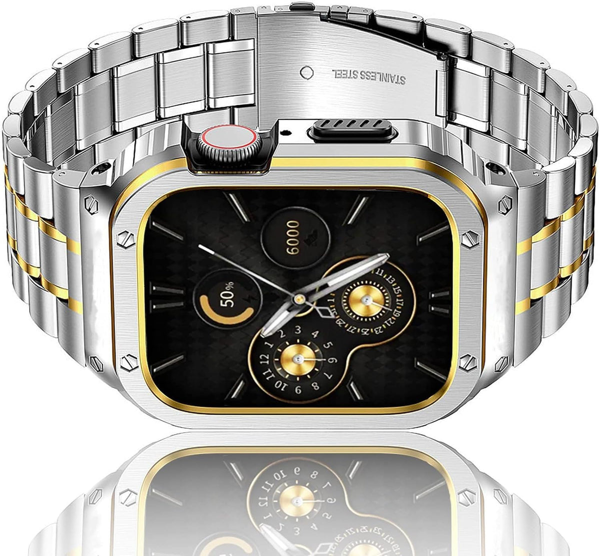 Q: Is the Amznew Stainless Steel Watch Case compatible with Apple Watch Series 8 and 7?A: Yes, the Amznew Stainless Steel Watch Case is compatible with Apple Watch Series 8 and 7 (41mm), as well as Series 6, 5, 4, and SE (40mm).