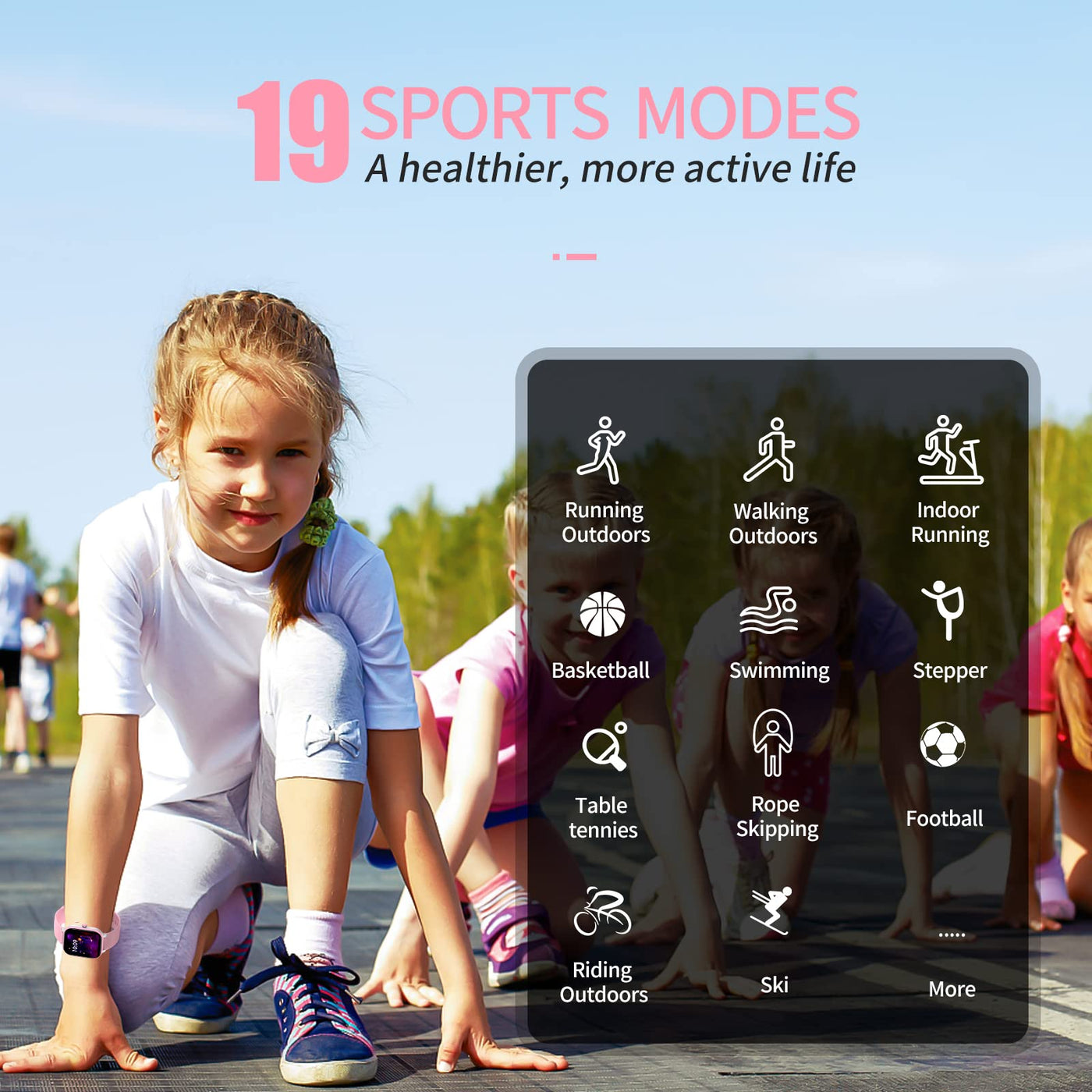 Q: What sports modes does the HENGTO Fitness Tracker for Kids support?A: The HENGTO Fitness Tracker supports 19 sports modes, including walking, running, cycling, and swimming, allowing kids to track their activities and stay active.