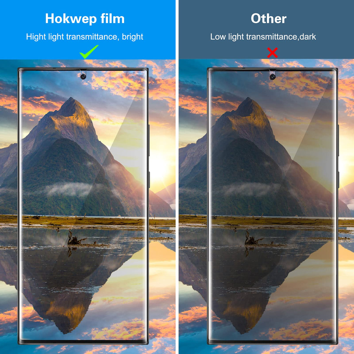 Q: Does the Hokwep Galaxy S22 Ultra Screen Protector affect touch sensitivity?A: No, the Hokwep screen protector is designed with full adhesive that attaches to the entire screen, ensuring compatibility with the ultrasonic fingerprint unlock feature. It maintains high touch sensitivity, allowing for a smooth user experience.