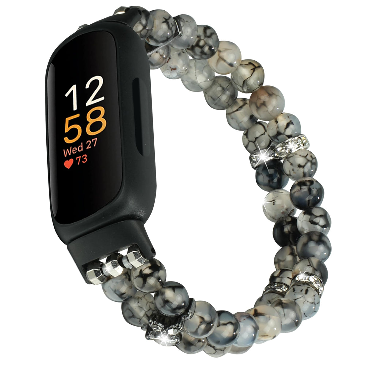 Ilvanya Beaded Bracelet Compatible Forfitbit Inspire 3 For Women ,Fashion Handmade Pearl Beads Elastic Stretch Watch Band For Fitbit Inspire 3 Fitness Tracker