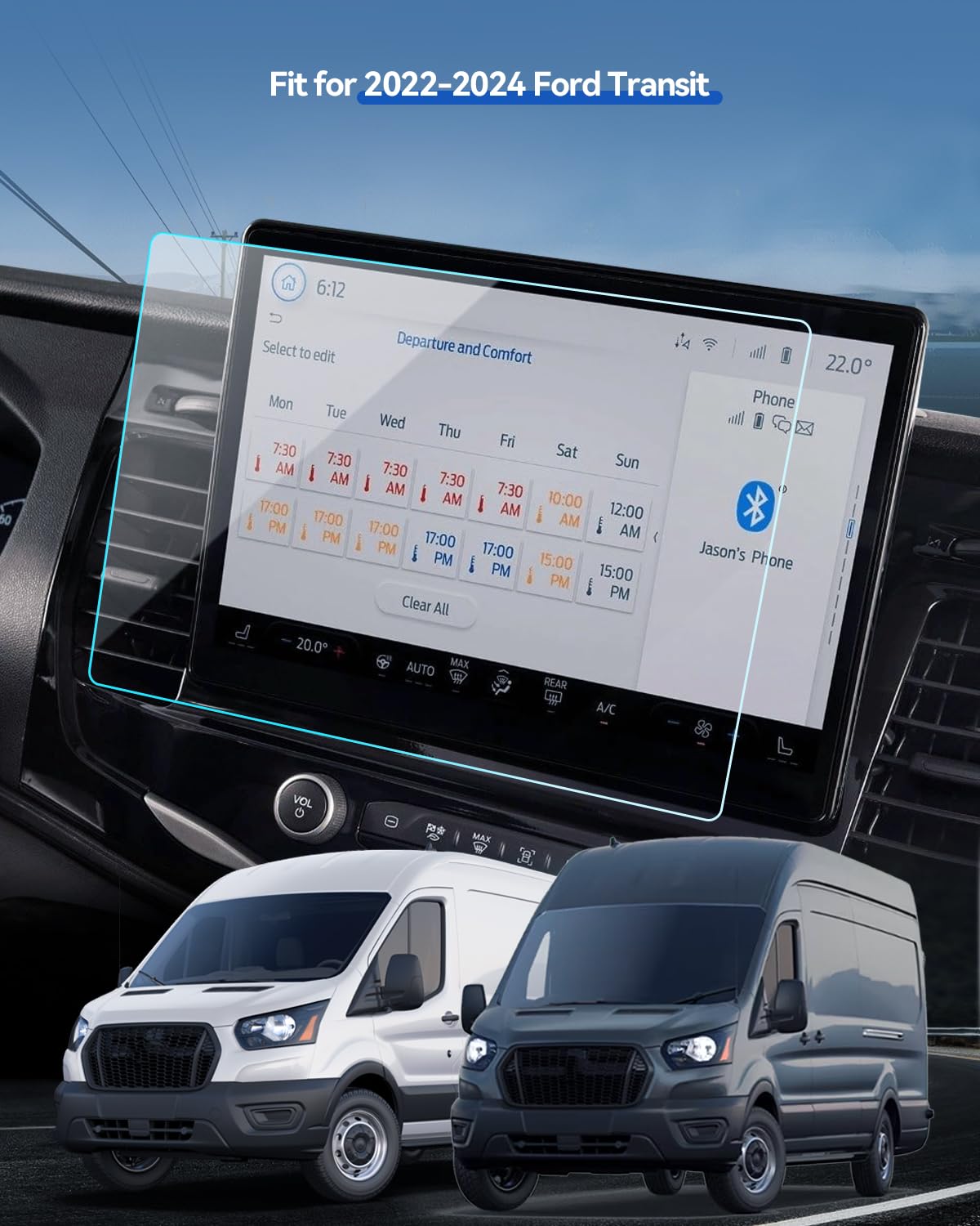 Q: Is the LANTU screen protector compatible with all Ford Transit models?A: The LANTU screen protector is specifically designed for the 2022, 2023, and 2024 Ford Transit models, including Passenger Van XL/XLT, Cargo Van, and Crew Van. Please confirm your screen size with the provided image before purchasing to ensure compatibility.
