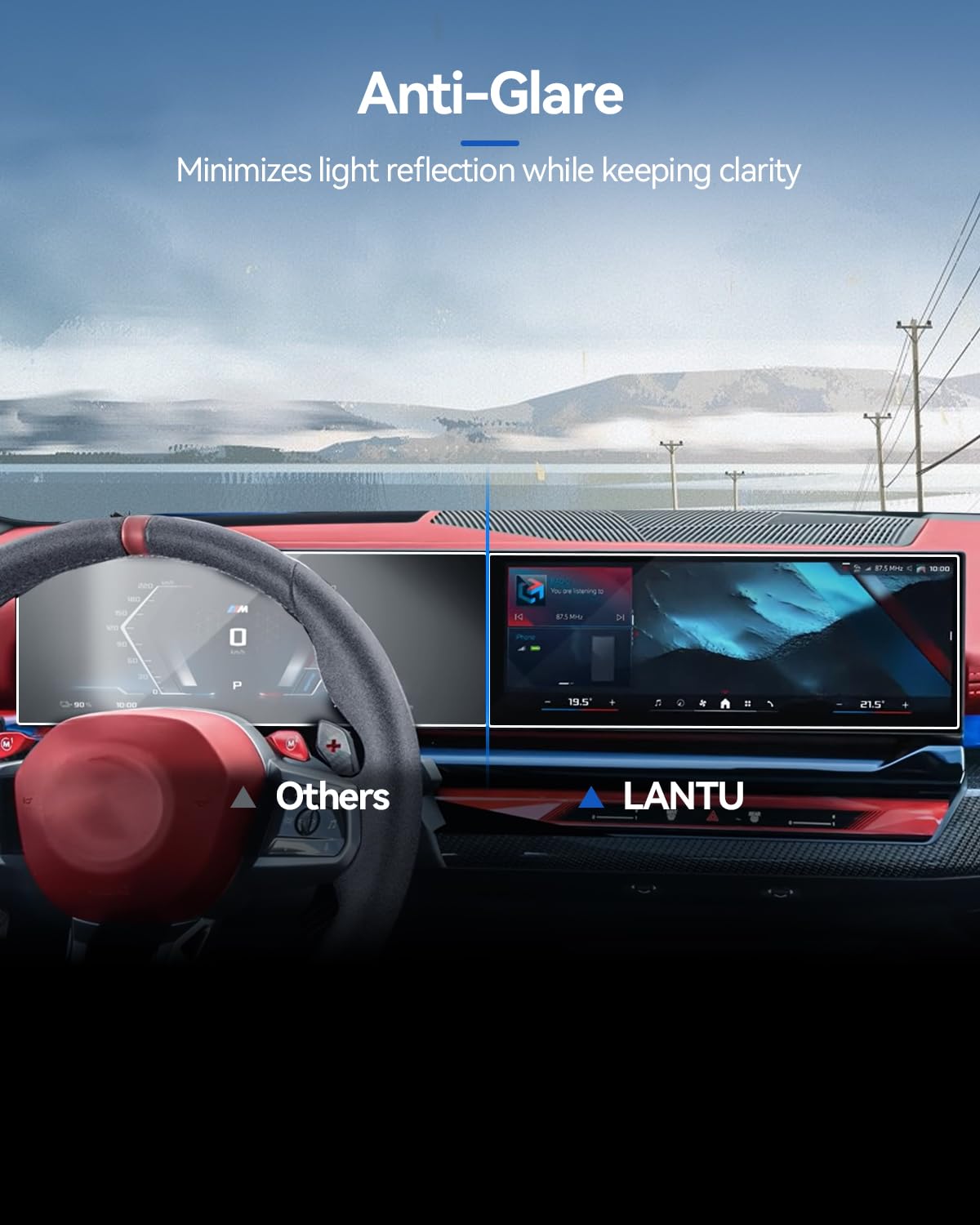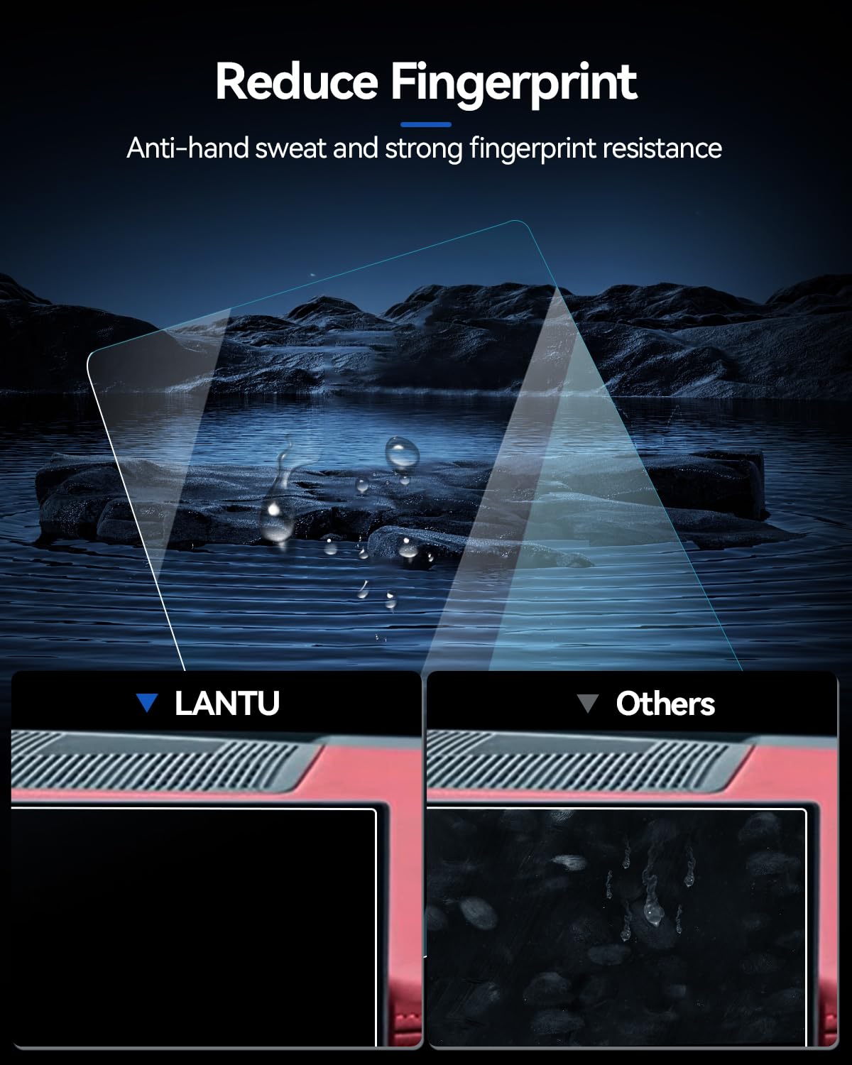 Q: How does the LANTU screen protector enhance visibility during driving?A: The LANTU screen protector features anti-glare properties that significantly reduce glare from bright sunlight, improving screen readability. This ensures a safer driving experience by allowing you to see important information clearly.