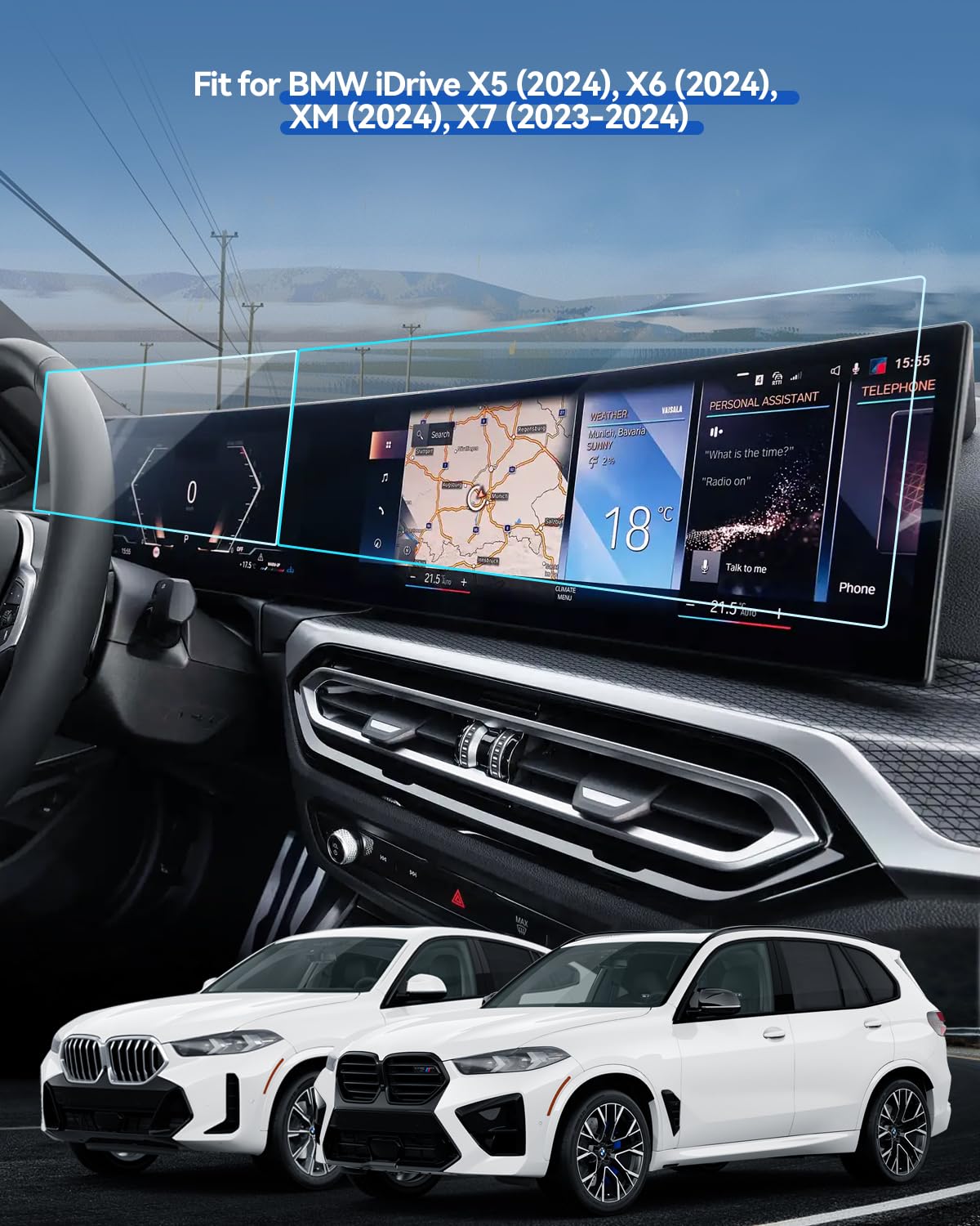 Q: Is the LANTU screen protector compatible with my BMW iDrive model?A: Yes, the LANTU screen protector is specifically designed for several BMW iDrive models including the X5 (2024), X6 (2024), XM (2024), and X7 (2023-2024). Please confirm your screen size with Picture 2 before purchasing to ensure compatibility.