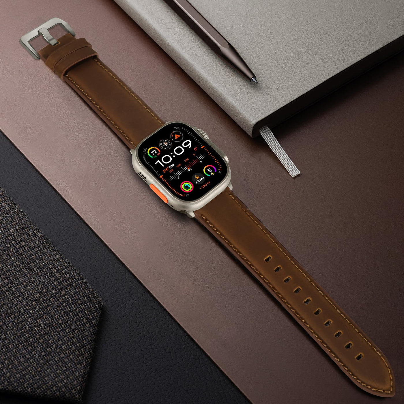Loirnbr Compatible With Apple Watch Ultra 2/Ultra Band 49Mm 45Mm 44Mm 42Mm, Men Women Genuine Leather Band Strap For Iwatch Band
