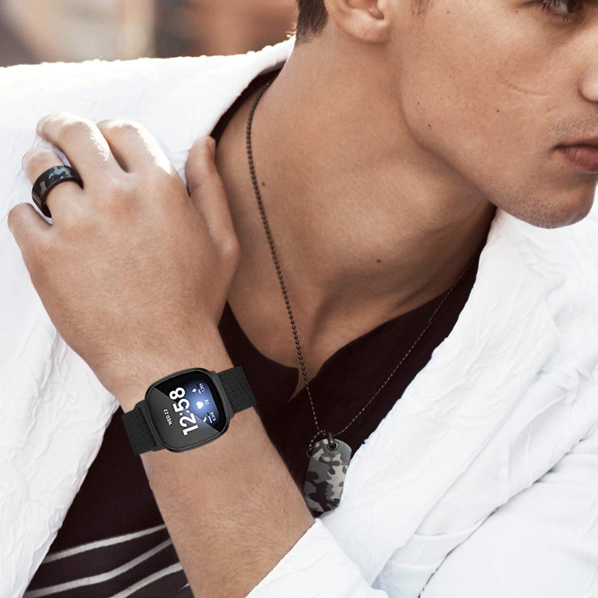 Maxjoy Compatible With Fitbit Sense/Versa 3 Bands, Versa3 Stainless Steel Metal Band Mesh Replacement Bracelet Wristband With Pr