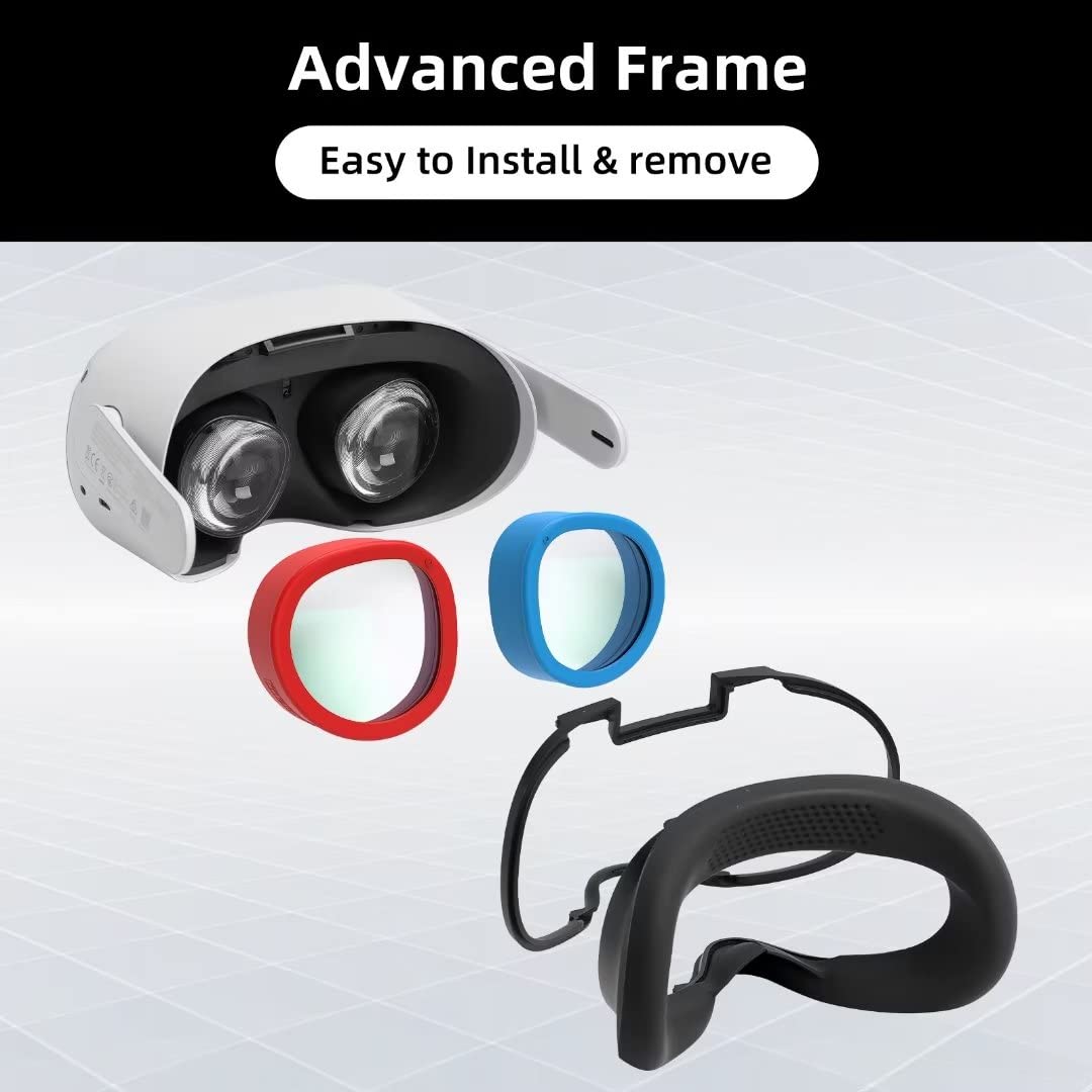 The Oculus Quest 2 Blue Light Glasses Are Our Most Advanced Product. Every Detail Has Been Engineered To Keep Your Eyes Healthy, Protect Your Vr Lenses, And Enjoy Virtual World. Most Digital Devices Emit Blue Light, Which Can Cause Uncomfortable Visual Symptoms, Including Dry Eyes, Fatigue, Headaches And More. These Anti Blue Light Lenses Help Reduce Glare, Block Harmful Blue Light And Make Your Eyes More Comfortable . They Are Very Suitable For Gamers. The Frames Are The Latest Generation Of Products. They Are Made Of Prime Silicone Which Avoid Scratching Your Glasses And Vr Lenses. These Are Replacement Of Your Blue Light Glasses. When Youre Playing Vr Games, Youll Barely Notice The Glasses. They Are Very Elastic, Easy To Install And Remove, And Will Not Damage The Vr Lens. The Frames Will Be Fixed Firmly On Your Vr And Wont Fall.