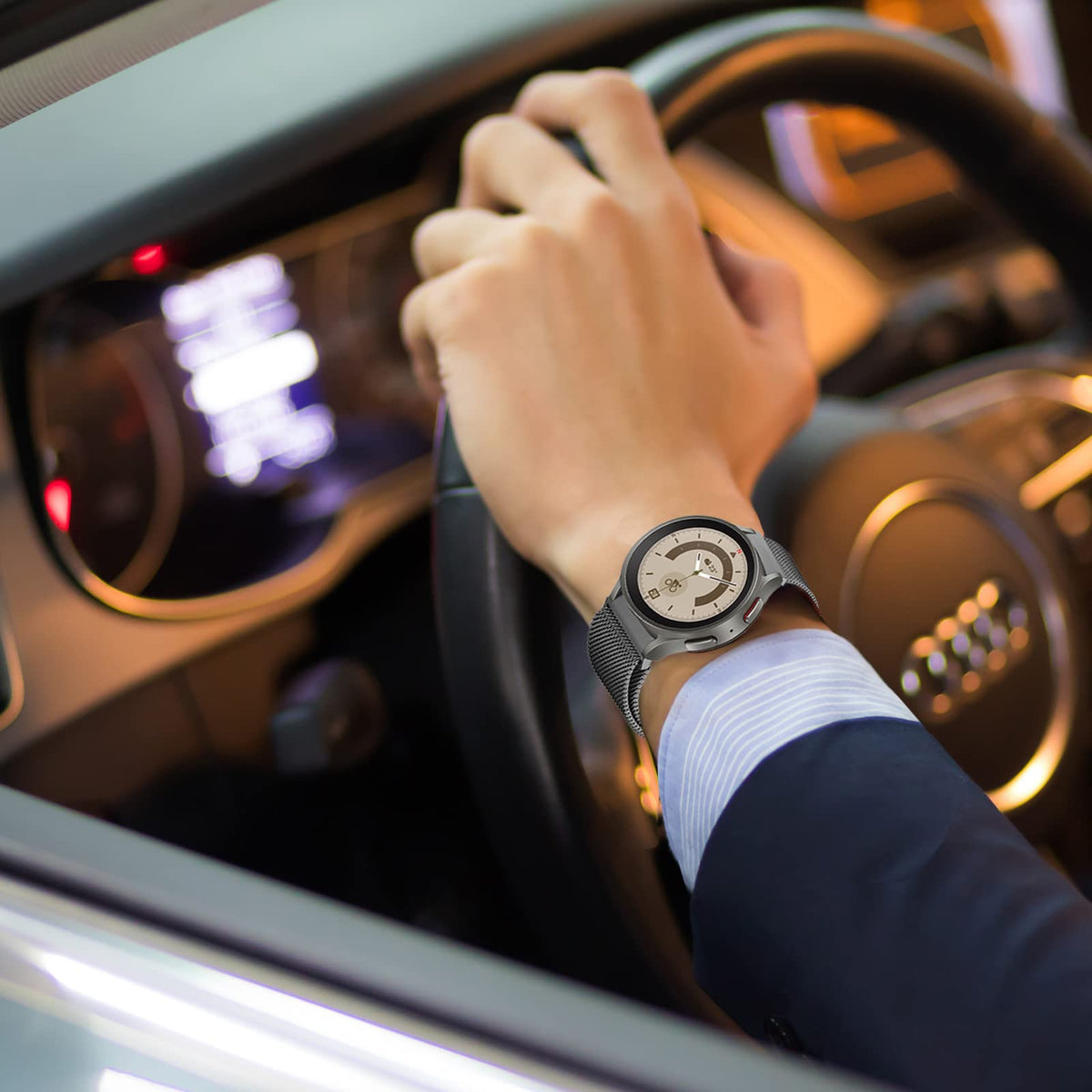 Q: Is the Milanese band compatible with Samsung Galaxy Watch models?A: Yes, the Milanese band is compatible with Samsung Galaxy Watch 4 (40mm and 44mm), Samsung Galaxy Watch 4 Classic (42mm and 46mm), Samsung Galaxy Watch 5 (40mm and 44mm), and Samsung Galaxy Watch 5 Pro (45mm). Please ensure to check your smartwatch model before purchasing.