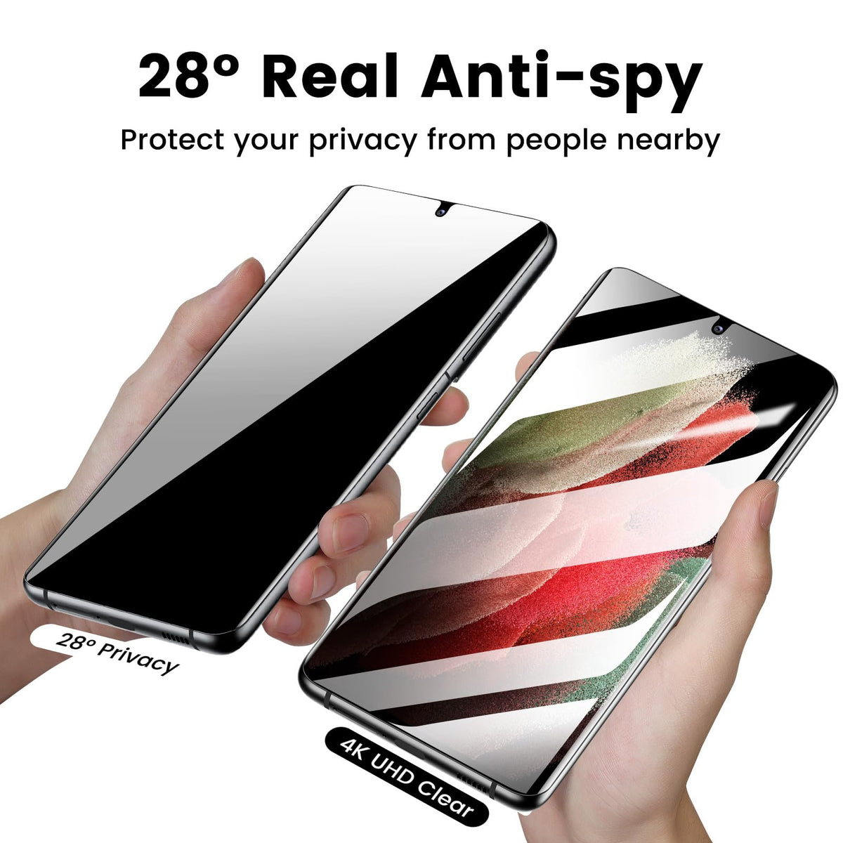Mohave 2 Pack [Auto Alignment/Dust Removal] Privacy Screen Protector For Samsung Galaxy S21 Ultra 5G 6.8?, 3D Curved Anti Spy Private Film, 7H Hybrid Material, 100% Ultrasonic Fingerprint Id Compatible, Case Friendly