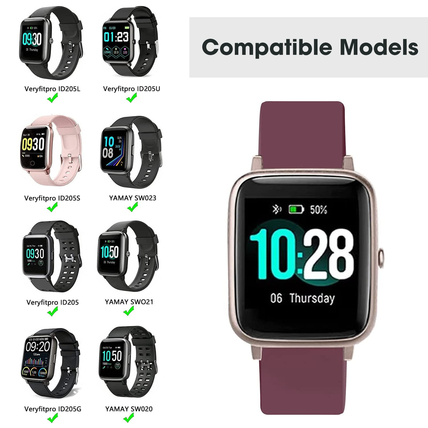 Compatibility: Smart Watch Bands Support Id205 Id205L Id205S Id205U Id205G Id216 Smartwatch Which Have App Veryfitpro These Bands Are Compatible With Any Watch (Traditional Or Smartwatch) That Uses Standarda19Mmaspring Bars Compatible With Willful Id205L,Sw021,Id205S,Sw025,Id205G,Sw023,Id205,Id205U Compatible With Yamay Sw020(Id205), Sw021(Id205L),Sw023(Id205U) Compatible With Letsfit Iid205, Id205L, Id205G, Id205S, Id205U Compatible With Letscom Id205, Id205L Id205S Id215G Id205U Id216 Compatible With Uwatch 3Uwatch Gt Ufit Compatible With Lintelek Id205L Id205S Id215U Id216 Compatible With Blackview Sw01Sw02 Compatible With Fitpolo Id205L Compatible With Hafury Id205L Smart Watch Etc Compatible With Delvfire Altair, Sirius (Id205L, Id205G) Compatible With Teminice Id205, Id205L, Id205G, Id205S, Id205U Compatible With Lifebee Id205, Id205L, Id205G, Id205S, Id205U