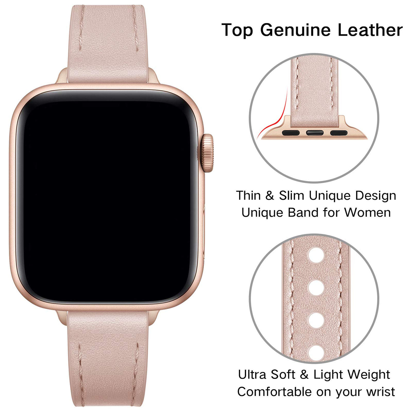 Ouheng Slim Band Compatible With Apple Watch Band 41Mm 40Mm 38Mm, Women Genuine Leather Band Thin Strap For Iwatch Se2 Se Series
