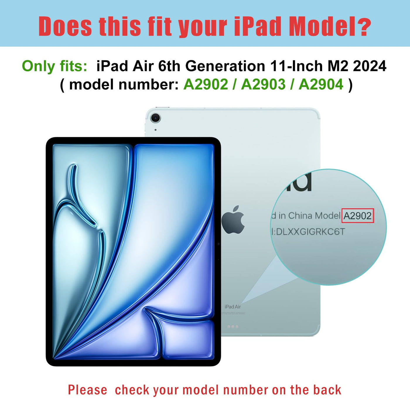 Q: Is the ProCase screen protector compatible with all iPad models?A: No, the ProCase screen protector is specifically designed for the iPad Air 11-Inch M2 (2024) and the 6th Generation model numbers A2902, A2903, and A2904. Please verify your iPad model number before purchasing to ensure compatibility.