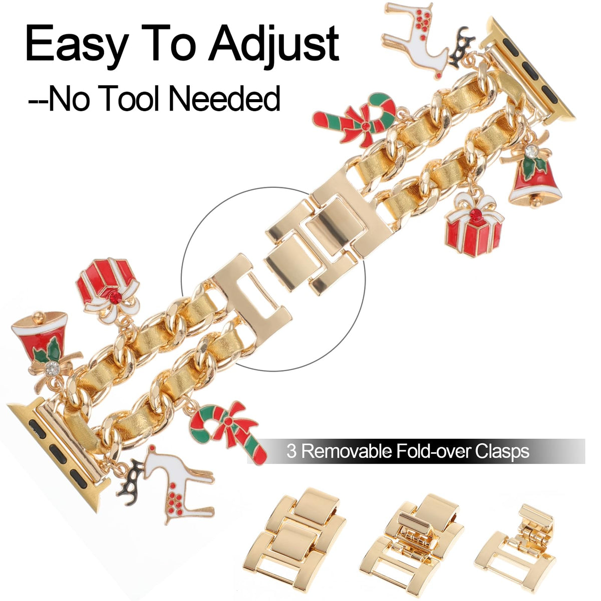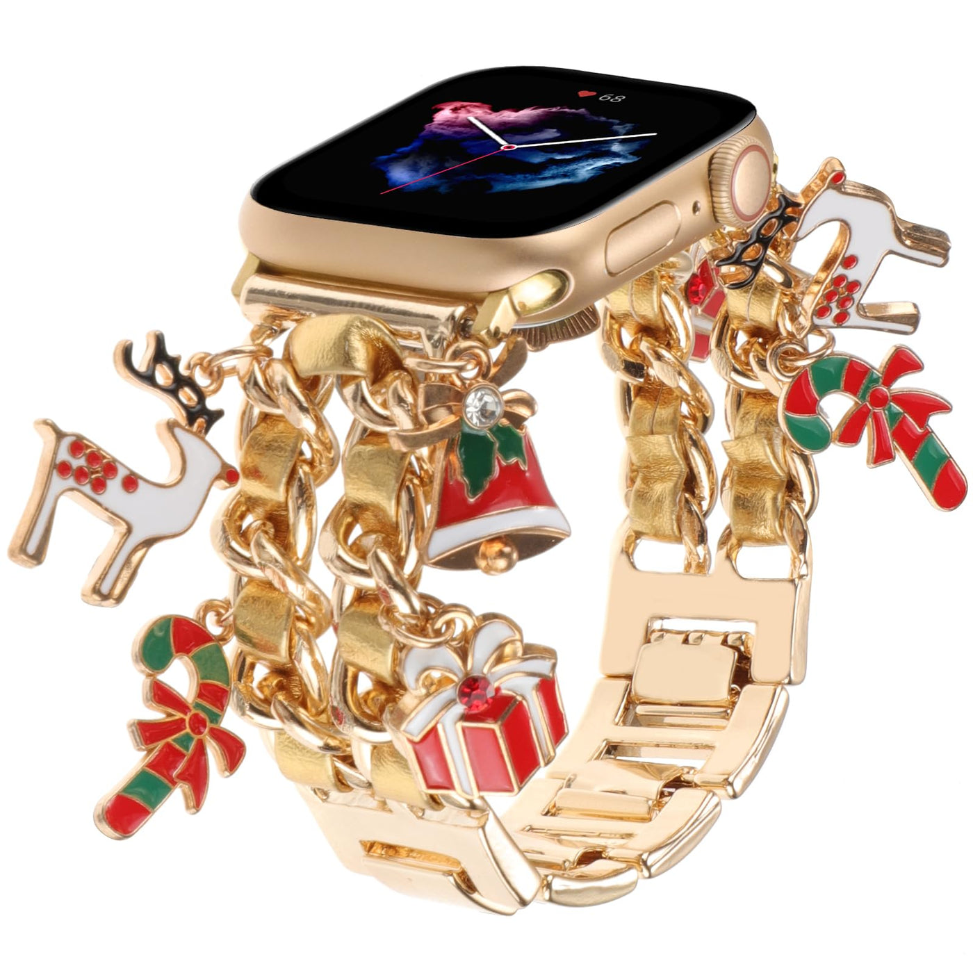 Specifications: Replacement For Apple Watch Band Material: Metal,Leather Product Style:Christmas,Festival,Cute Color: Gold Watch Band Quantities Of Pendants On The Golden Chain: 2 Exquisite Christmas Bells 2 Lovely Christmas Presents 2 Santa Claus'S Canes 2 Cute Christmas Elks Watch Band Net Weight:About 62.03G (2.19Oz) Watch Band Size:165Mm(Length)X20Mm(Width) (6.5 *0.79 ) Package Size: 228Mm(Length)X70Mm(Width) (8.98 *2.76 ) Compatible Models: Please Choose Size ''38/40/41Mm'' For The Following Series: Compatible With Apple Watch Series 1/2/3 38Mm(2015/2016/2017) Compatible With Apple Watch Series 4/5/6 40Mm(2018/2019/2020) Compatible With Apple Watch Series 7/8/9 41Mm(2021/2022/2023) Compatible With Apple Watch Se 40Mm (2020/2022) Please Choose Size ''42/44/45Mm'' For The Following Series: Compatible With Apple Watch Series 1/2/3 42Mm(2015/2016/2017) Compatible With Apple Watch Series 4/5/6 44Mm(2018/2019/2020) Compatible With Apple Watch Series 7/8/9 45Mm(2021/2022/2023) Compatible With Apple Watch Se 44Mm (2020/2022) Compatible With Apple Watch Ultra,Ultra 2 49Mm (2022/2023) (Please Check The Size On The Back Of Your Watch To Choose The Right Size.) What'S In The Box? 1 X Metal Watch Band(Watch Not Included) About Realsign: 1.We Sell Various Types Of Watch Bands,Watch Band Charms Accessories.We Sell Watch Straps Made Of Various Materials,Items With Original And Stylish Styles. 2.All Our Products Use Premium Materials,Have Good Quality And Are Well Packaged,We Provide Good Pre-Sales And After-Sales Services. 3.If You Have Any Questions About Our Products,Please Contact Us By Email And We Will Provide You With A Solution As Soon As Possible.