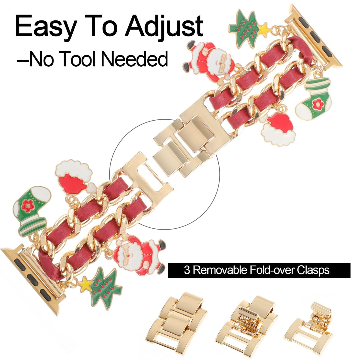 Specifications: Replacement For Apple Watch Band Material: Metal,Leather Product Style:Christmas,Festival,Cute Color:Golden Red Watch Band Quantities Of Pendants On The Golden Chain: 2 Exquisite Amiable Santa Claus 2 Lovely Christmas Hats 2 Christmas Trees With A Star 2 Cute Christmas Socks Watch Band Net Weight:About 60G (2.12Oz) Watch Band Size:165Mm(Length)X20Mm(Width) (6.5 *0.79 ) Package Size: 228Mm(Length)X70Mm(Width) (8.98 *2.76 ) Compatible Models: Please Choose Size ''38/40/41Mm'' For The Following Series: Compatible With Apple Watch Series 1/2/3 38Mm(2015/2016/2017) Compatible With Apple Watch Series 4/5/6 40Mm(2018/2019/2020) Compatible With Apple Watch Series 7/8/9 41Mm(2021/2022/2023) Compatible With Apple Watch Se 40Mm (2020/2022) Please Choose Size ''42/44/45Mm'' For The Following Series: Compatible With Apple Watch Series 1/2/3 42Mm(2015/2016/2017) Compatible With Apple Watch Series 4/5/6 44Mm(2018/2019/2020) Compatible With Apple Watch Series 7/8/9 45Mm(2021/2022/2023) Compatible With Apple Watch Se 44Mm (2020/2022) Compatible With Apple Watch Ultra Ultra2 49Mm (2022/2023) (Please Check The Size On The Back Of Your Watch To Choose The Right Size.) What'S In The Box? 1 X Metal Watch Band(Watch Not Included) About Realsign: 1.We Sell Various Types Of Watch Bands,Watch Band Charms Accessories.We Sell Watch Straps Made Of Various Materials,Items With Original And Stylish Styles. 2.All Our Products Use Premium Materials,Have Good Quality And Are Well Packaged,We Provide Good Pre-Sales And After-Sales Services. 3.If You Have Any Questions About Our Products,Please Contact Us By Email And We Will Provide You With A Solution As Soon As Possible.