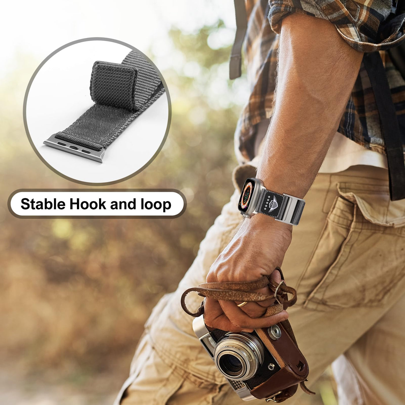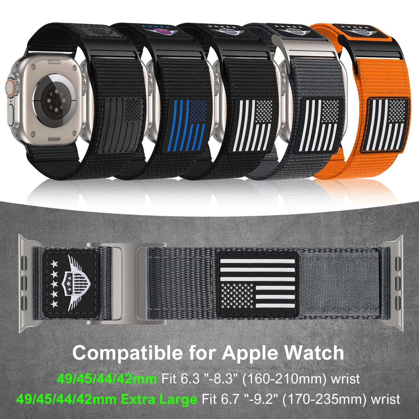 Compatible Models: Our Nylon Sport Bands Tough Guy Style Strap Compatible With Apple Watch Band 46Mm Men, Apple Watch Band 44Mm Men, For Apple Watch Band 45Mm Men, For Apple Watch Ultra 2 Band 49Mm ,For Apple Watch Ultra Band 49Mm Men, For Apple Watch Band 42Mm Men, For Apple Watch Series 8 45Mm For Men, For Apple Watch Series 7 45Mm For Men, For Apple Watch Series 6 44Mm Men, For Apple Watch Series 5 44Mm Men, For Apple Watch Series 4 44Mm Men, For Apple Watch Se 44Mm Men, For Apple Watch Series 3 42Mm Men, For Apple Watch Series 2 42Mm Men, For Apple Watch Series 1 42Mm Men, For Apple Watch Ultra 49Mm Men, For Iwatch Ultra 49Mm Men, For Iwatch Series 8 45Mm Men, For Iwatch Series 7 45Mm Men, For Iwatch Series 6 44Mm Men, For Iwatch Series 5 44Mm Men, For Iwatch Series 4 44Mm Men, For Iwatch Se 44Mm Men, For Iwatch Series 3 42Mm Men, For Iwatch Series 2 42Mm Men, For Iwatch Series 1 42Mm Men, For Iwatch Ultra Bands 49Mm Men,For Iwatch Bands 45Mm Men, For Iwatch Bands 44Mm Men,For Iwatch Bands 42Mm Men.Rugged & Durable: The Rugged Strap Is Made Of Comfortable & Skin-Friendly Nylon Material, Comfortable & Breathable, Durable & Washable.Easy Installation & Buckle Fasteners Design:The Nylon Woven Band Comes With Metal Connectors At Both Ends, Which Locks Onto Your Apple Watch Interface Precisely And Securely, One Hand Assembly & One Button Removal. Durable Loop And Buckle Fastener Design With Superior Adhesion, Which Let Your Watch Firmly Fix On Your Wrist, Not Easy To Fall Off.Designed For Apple Watch Wristbands For Men A Ideal Gift For Your Family, Friends.