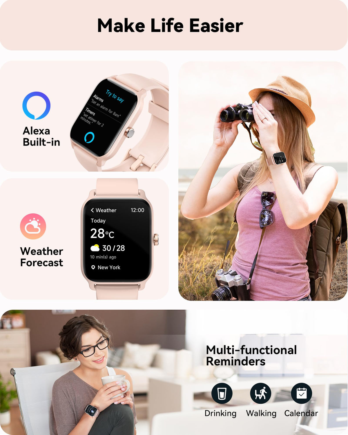 Smart Watch For Women,1.8''Fitness Watch(Answer/Make Call),Alexa Built In, [24H Heart Rate Sleep Blood Oxygen Monitor],5Atm Wate