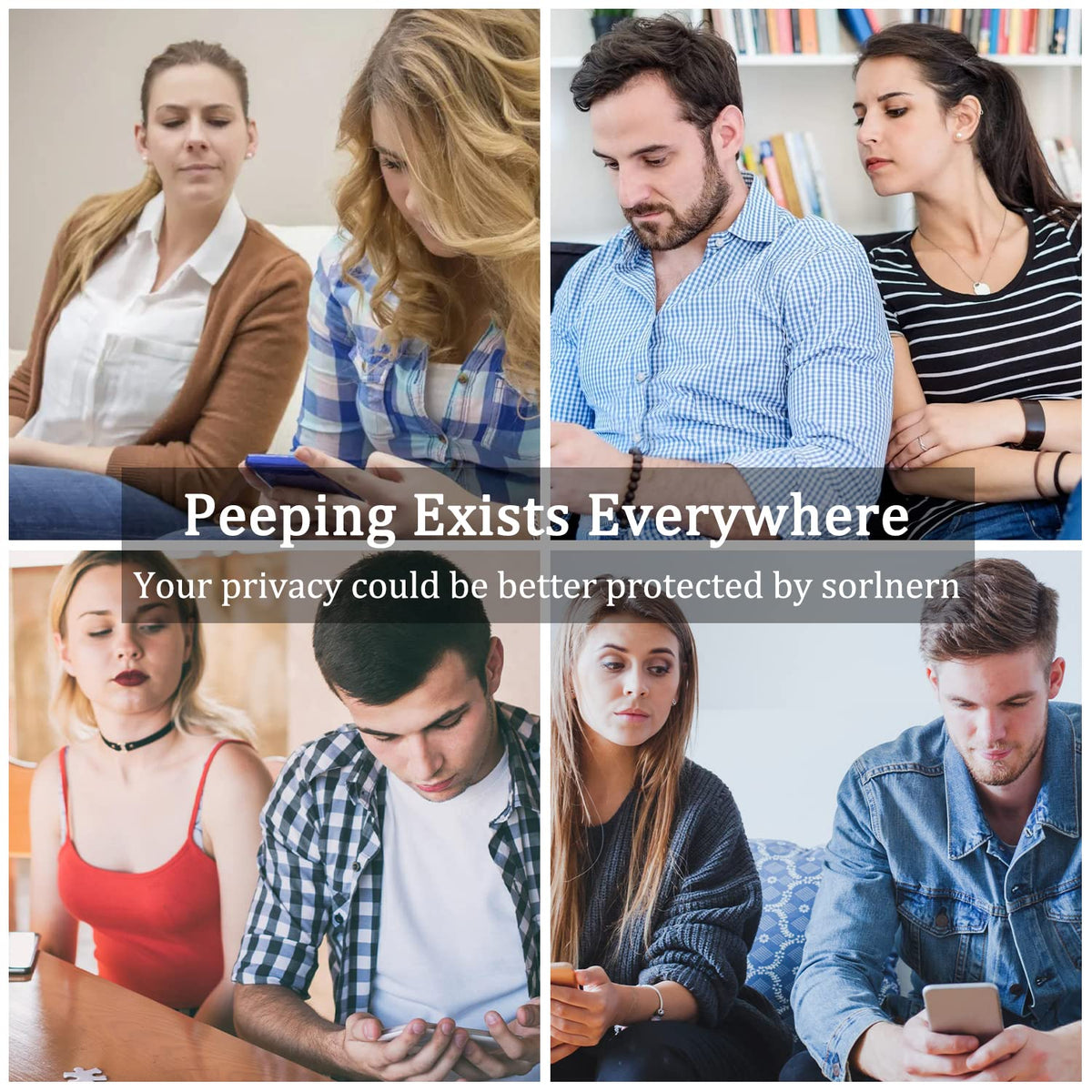 Q: How does the privacy feature of this screen protector work?A: The privacy feature of the Sorlnern screen protector darkens the display when viewed from the side, so only the person directly in front of the screen can see what's displayed. This effectively protects your personal and sensitive information from prying eyes in public.