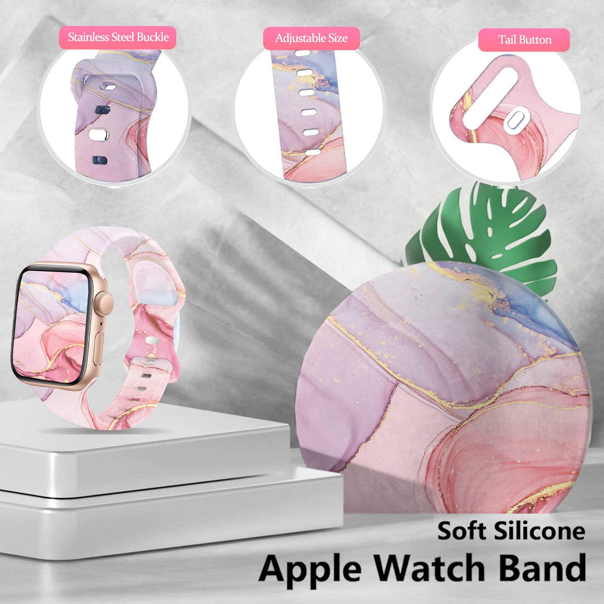 Sqweey Watch Bands Compatible With Apple Watch 38Mm 40Mm 41Mm 42Mm 44Mm 45Mm Women Men Marble Soft Silicone Sports Wristband Strap For Iwatch Apple Watch Series 7 Apple Watch Series Se Apple Watch Series 6 Apple Watch Series 5 Apple Watch Series 4 Apple Watch Series 3 Apple Watch Series 2 Apple Watch Series 1 Unique Design Simple Shape, Fresh Bright Band Color Brighten Up Your Apple Watch More Stylish, Unique And Eyes-Catching All Kids, Boys, Girls, Man And Women Who Love Beauty Worth Having It Waterproof And Skin-Friendly Iwatch Bands Use Soft And Smooth Silicone Which Is Durable And Lightweight Comfortable Touch Feeling Free Your Wrists When You With The Silicone Sport Apple Watch Band Offer You A Flexible And Comfortable Wearing Experience Enjoy Our Design Enjoy The Most Out Of Every Day Suitable Occasions It Fits Many Occasions, Perfectly Fit For Runs, Swims, Rides, Workouts, Parties, Wedding, Climbing, Hiking, Camping, Traveling And More Indoor, Outdoor Activities It Is Perfect Gift For Your Kisd, Family And Friends Size 38Mm40Mm41Mm Suitable For 51-71(130Mm-190Mm) Wrist It Is Slim Design For Children And Adults With Small Wrists 42Mm44Mm45Mm Suitable For 63 -83 (140Mm-205Mm) Wrist Please Measure Your Wrist And Choose The Correct Watch Model & Size Before Purchasing