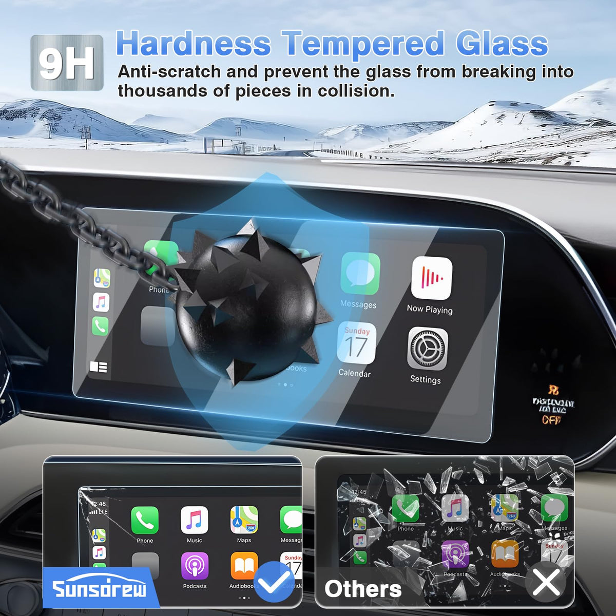 ?Fit Perfectly Palisade 10.25''?-Sunsdrew 2Pcs Screen Protector Specialized For 2020 2021 2022 Hyundai Palisade Ltd Limited Calligraphy 10.25-Inch Touch Display Screen.Sunsdrew Screen Protector Uses Advanced Technology And Laser Cutting To Fit Perfectly On The Original Device Screen.Please Check Your Touchscreen Size Before Purchasing. | ?Clear&Anti-Glare?-Installing Our Protective Film Does Not Affect The Gps Display'S Color, Icon Size And Touch Screen Functionality. Screen Still Legible Even Wearing Sunglasses. Viewing The Screen Will Not Reflect Light, And Daily Driving Will Not Be Troubled By Glare, The Probability Of Accident Happenings Will Be Greatly Reduced. | ?Scratch-Protection?-Made Of 9H Hardness Tempered Glass, Providing Your Dashboard Panel Maximum Coverage, Protects Your Screen From Scratches, Scrapes And Impact From Minor Shock. Ordinary Daily Collisions Will Not Cause Damage To Your Screen, Won'T Break Easily. | ?Fingerprint Resistant?-The Hydrophobic And Oleophobic Layer Reduces Sweat Residue And Fingerprints, Keeping Your Screen Pristine All Day Long. It Does Not Interfere With Your Screen'S Touch Sensitivity. Touch Feels Smooth And Not Stuck. | ?Easy To Install&Remove?-Give The Screen One More Good Wiping To Get Dust Off, Pull Off The Backing, Then Drop The Screen Protector On. Just Take About 18 Minutes To Make Your Center Control Navigation Screen Much More Crisp, Clear And Have Brighter Coloring.