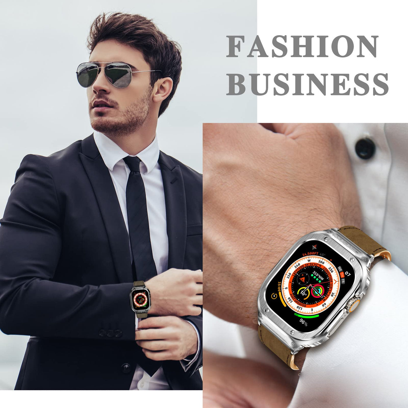 Compatibleeather Watch Case With Band Is Compatible With Apple Watch 49Mm(Ultra 21)), The Strap Is Suitable For Wrist Size 63-91, The Bands Can Be Adjusted At Any Time To Perfectly Fit Your Wrist(Iwatch Not Included) 316L Stainless Steel Casethe Bumper And Buckle Are Made Of High-Quality 316 Steel, Which Is Rugged, Shock-Proof And Drop-Proof, Protecting Your Watch From Wear And Tear In All Directions, And Has A Precise Hole Design, Allowing You To Easily Use Any Button Of The Watch Enhanced Comfort And Durability, This Band Is Skin-Friendly And Delicate Remium Leather Bandremium Soft Top Grain Leather With Stainless Steel Connectors Seamlessly Connect To Your Watch, Skin-Friendly, Comfortable Touch Feeling On Your Wrist, Anti-Slip & Sweat-Absorbent And The Interior Lining Is Also Made Of Calf Leather Easy To Adjustthe Band Has Multiple Holes, It Is Easy To Adjust The Size For Your Wrist Equipped With Removal Tools For Easy Installation And Removal Please Follow The Steps In The Manual To Connect The Strap To The Case To Avoid Damage 100% Satisfied Customer Serviceany Dissatisfaction Such As Quality Problems Within 3 Months Can Be Replaced Or Fully Refunded For You Your Valuable Suggestions For Our Watch Bands Are A Valuable Asset For Us To Improve Our Products If You Have Any Questions About The Product, Please Feel Free To Contact Us